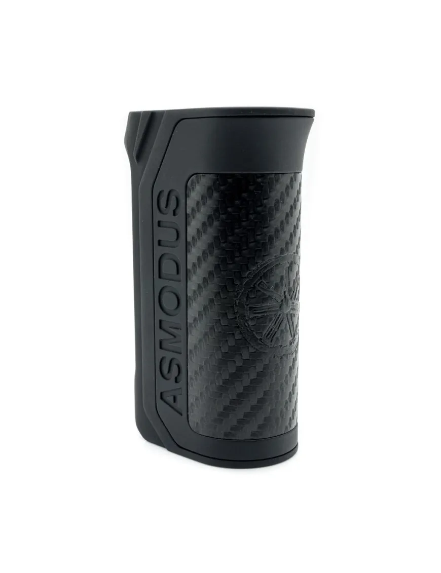 Asmodus Amighty 100W TC виконаний з цинкового сплаву із вставками з карбону і віддалено нагадує пістолетну рукоять, завдяки чому він дуже зручно сидить у руці. Подібна форма має одну особливість – проблем із натисканням кнопки «fire» не виникне, оскільки вона розташована чітко під вказівним пальцем.
