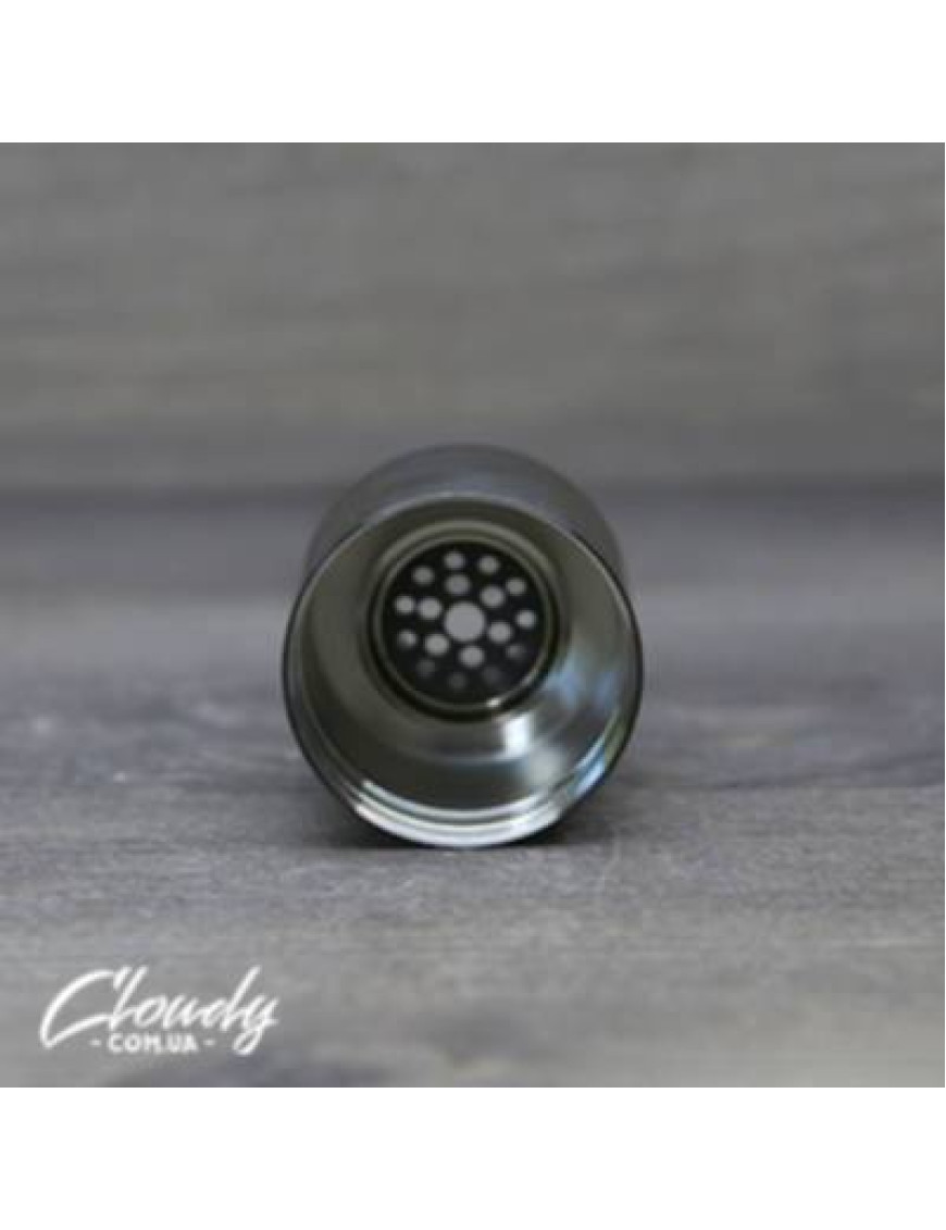 Дрип-тип виготовлений із делрину, відрізняється досить комфортними розмірами. Фіксується дріп-тип на двох о-рингах, тримається міцно, але помітний невеликий люфт. Вже після кількох використання стає помітним якісна обробка, хороші матеріали, що витримують високі температури. Якщо цей формат вас не влаштовує, з особистих причин можна скористатися перехідником під 510 формат. Три отвори для обдування, з можливістю тонкого регулювання, надає користувачеві глибоку передачу аромату.