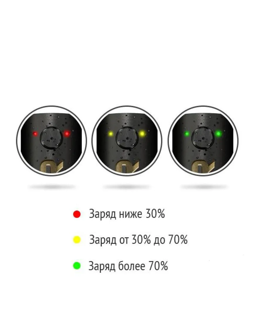 - Приємною фішкою, як для мехмоду, є індикатор стану заряду акумуляторної батареї. Це два LED індикатори по обидва боки від кнопки Fire.
