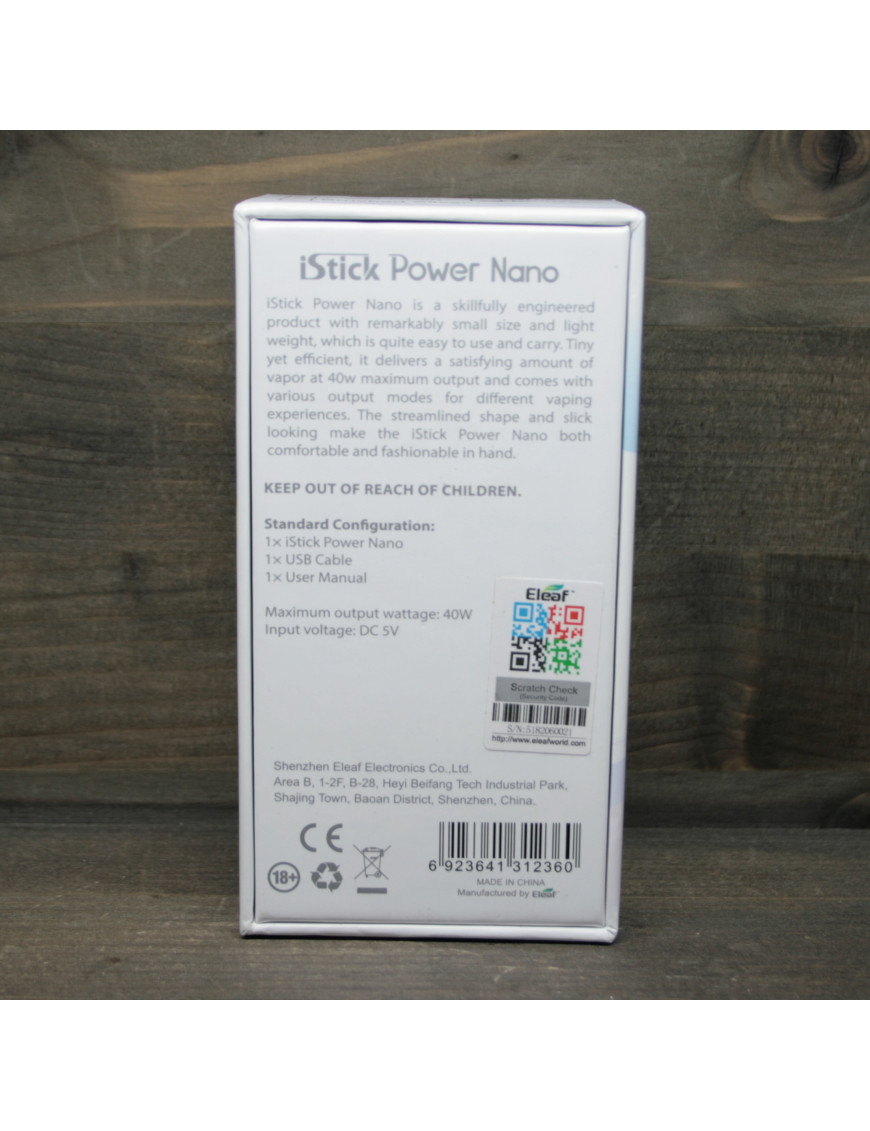 Електронна начинка боксмоду Eleaf iStick Power Nano працює в діапазоні потужності від 1 до 40 W – для моди цієї категорії цього цілком достатньо. Потужність пристрою дозволяє насолоджуватися щільною, смачною та насиченою парою.