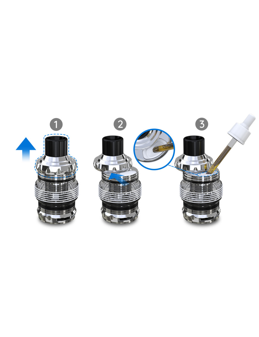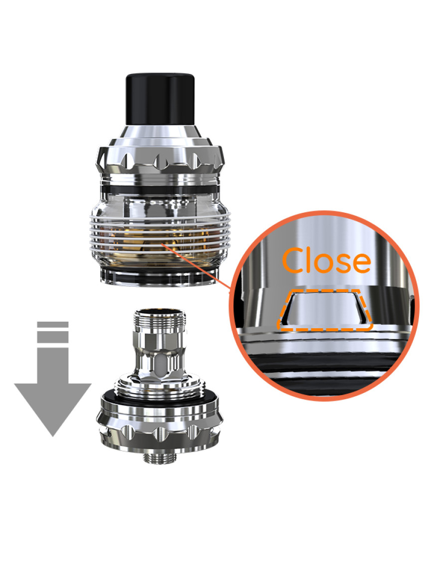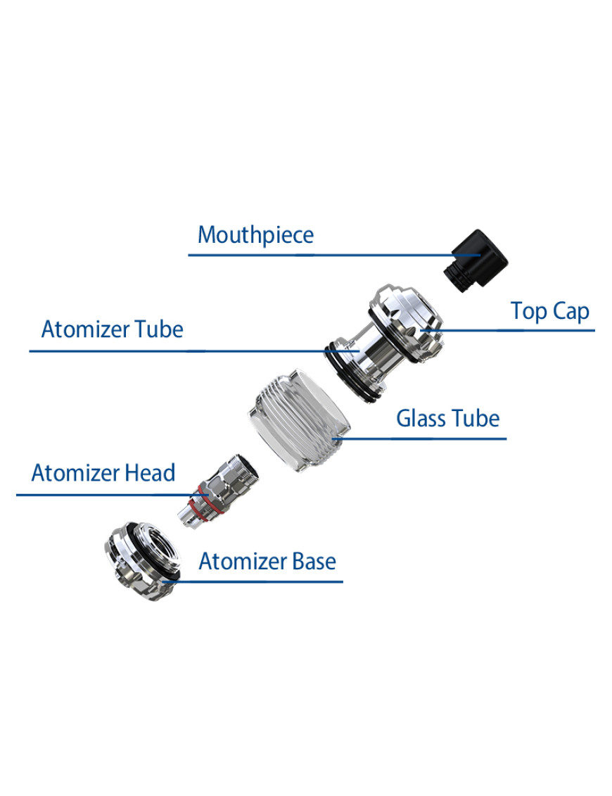 Цей бак сумісний із багатьма випарниками серії EC. У комплект поставки входить випарник EC-M з опором 0,15 Ом, розрахований на потужність від 30 до 75 Вт, та випарник EC-S з опором 0,6 Ом, розрахований на потужність від 15 до 30 Вт.