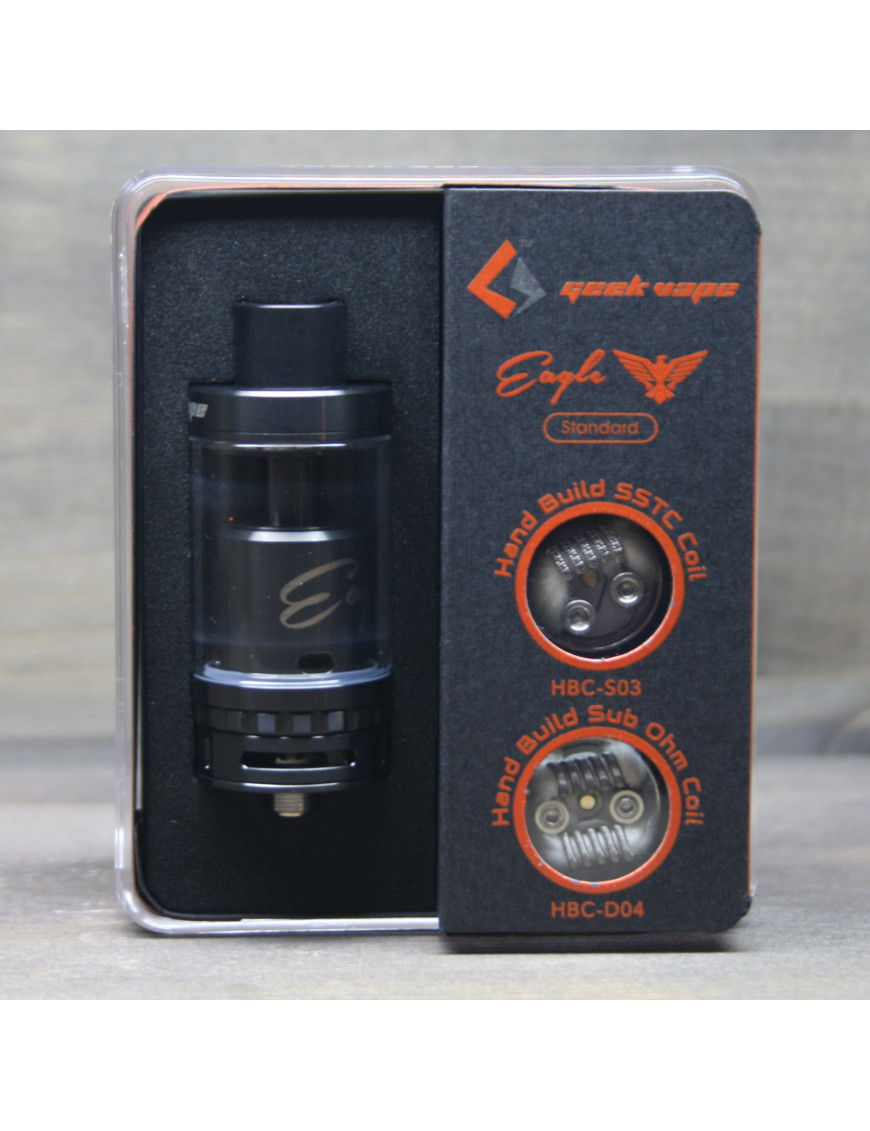 GEEK VAPE - популярний у вейперів виробник пристроїв для ширяння. Їх розробки славляться придатним навалом, стильним дизайном та потужністю. EAGLE RTA TANK - стильний чорний бак, виготовлений зі сталі. Він дозволяє отримувати відмінний смак від жижі та видавати великі клуби пари. На корпусі вигравірувано назву компанії та емблема.