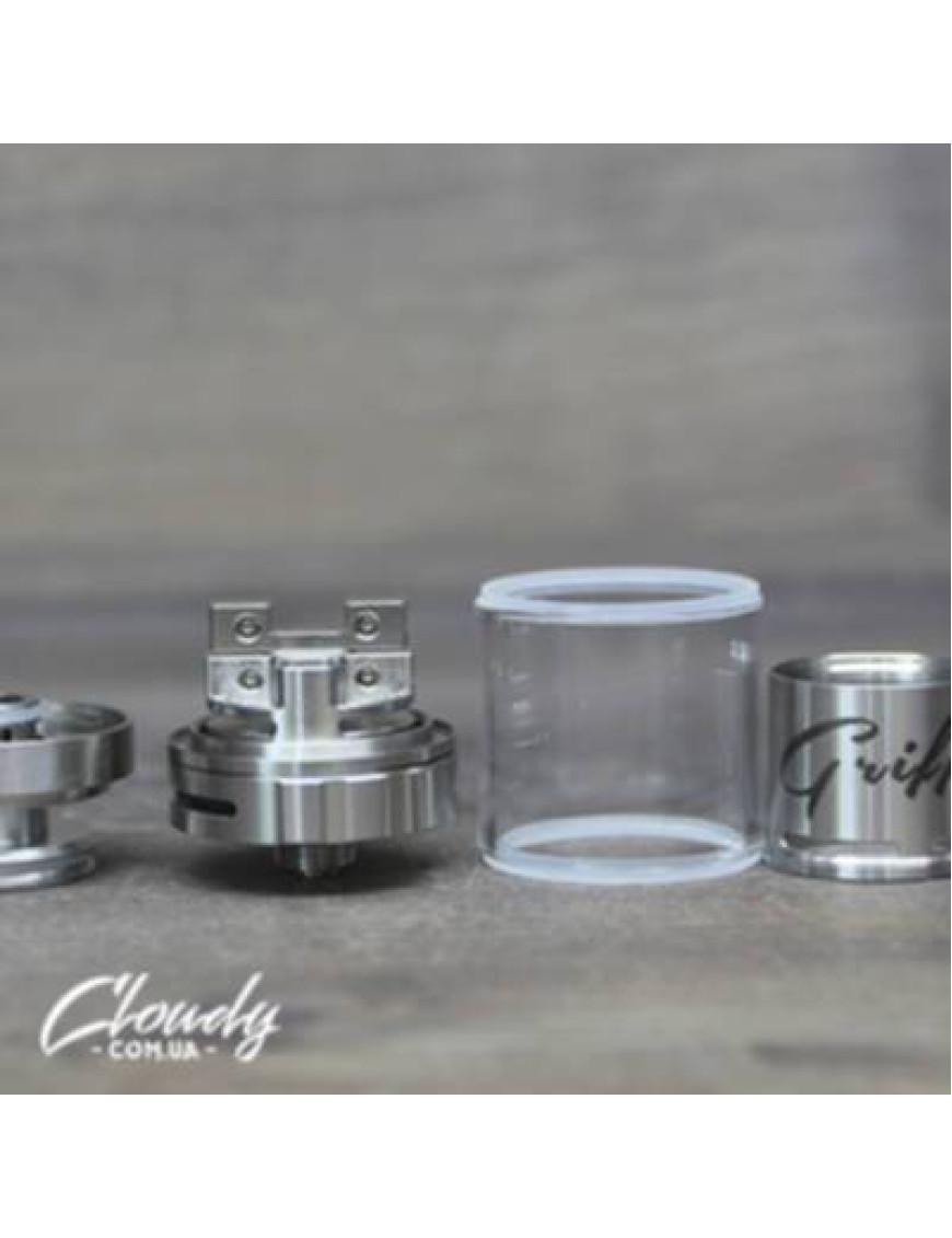 GRIFFIN MINI 25 – це покращена версія популярного бака, лише у зменшеному форматі. У цьому баку вдосконалили базу - дві стійки типу велосипеда, що дозволяє намотувати будь-яку спіраль. Відстань між стійками - 18 мм, це дозволяє розмістити будь-яку намотування. При цьому вона не зменшує обсягу бака.