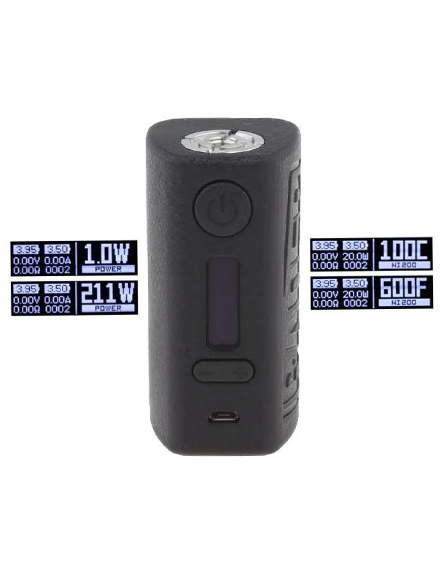 Девайс працює за допомогою двох акумуляторів стандарту 18650. Боксмод має OLED дисплей з діагоналлю близько 0,9 дюйма. Його максимальна потужність може досягати 211 Вт і все це завдяки установці чіпсету GT211, що має два ядра. Крім того, пристрій має функцію нагріву.