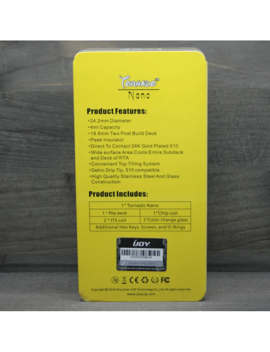 IJOY - TORNADO NANO навалистий бак, який дозволяє парити в режимі чотирьох і шести спіралей. Виробник реалізував швидку заміну ватки. Фортеця затяжки можна регулювати за допомогою спеціальних кілець.