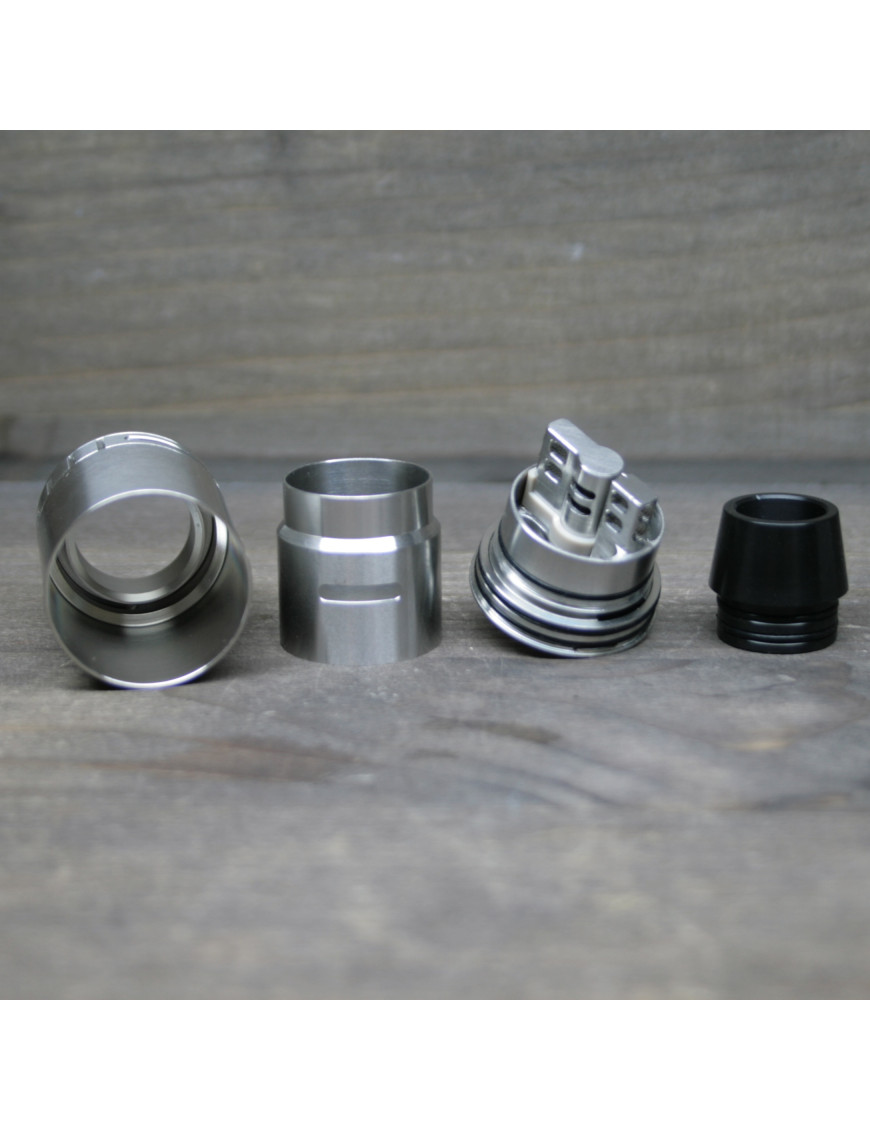 Дріпка зібрана з 3 частин: удосконалена база атомайзера, топ-кеп з регульованим верхнім обдуванням та спідниця камери випаровування. Усередині встановлені стійки Velocity для самостійного накрутки спіралей. У стійках є 2 отвори для кріплення спіралей великої товщини – їх діаметр становить 2 мм. Також його можна використовувати в стані без стійкості.