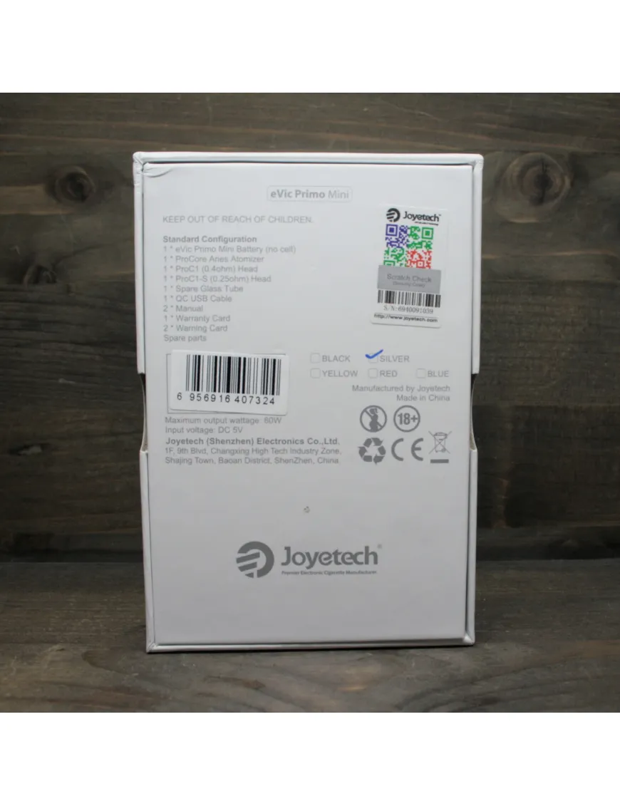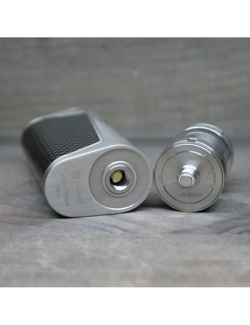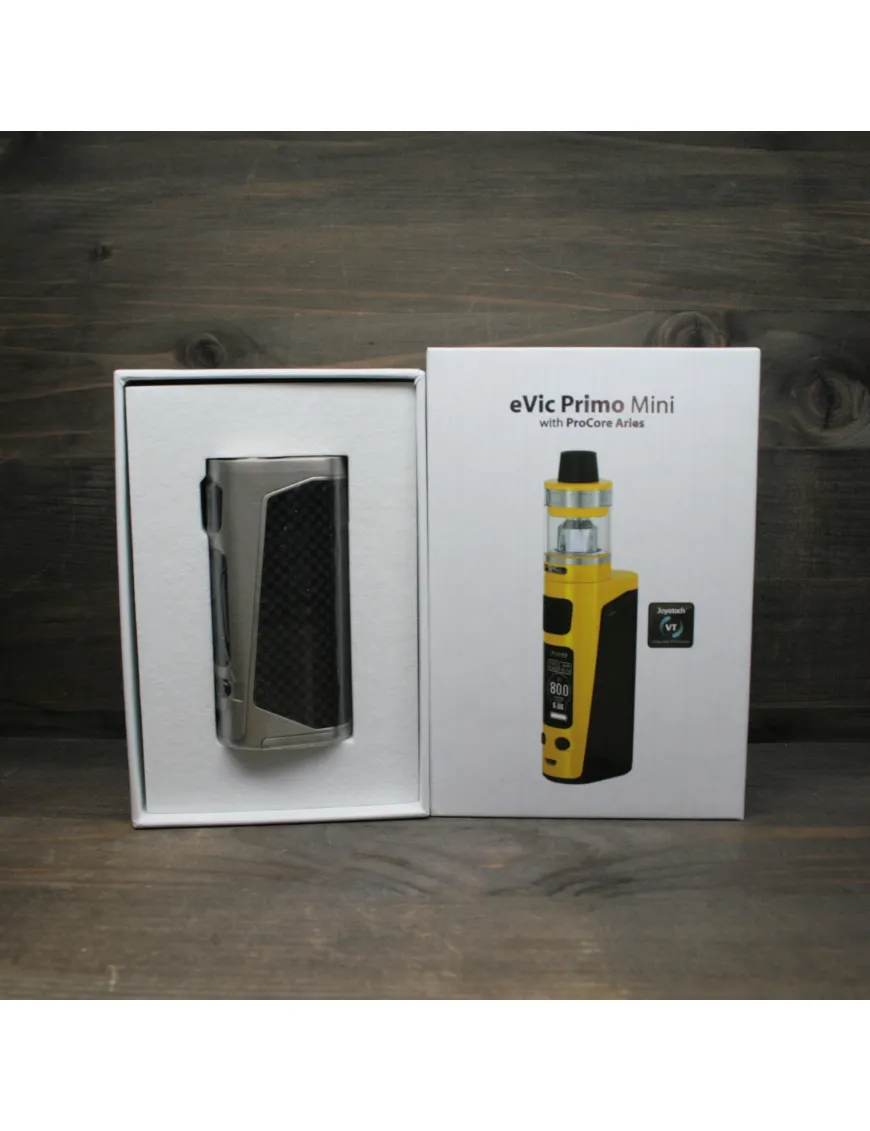 Joyetech - eVic Primo Mini Kit 80W виконаний зі сплаву цинку та нержавіючої сталі, поверхня гладка та не має гострих кутів. Бічні панелі та одна із сторін мають вінілову вставку з імітацією карбону.