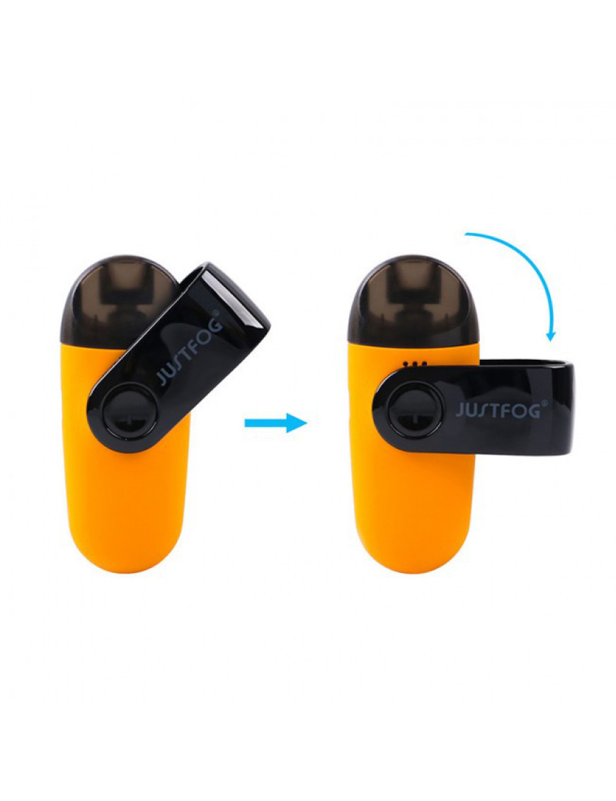 Kit оснащений знімним картриджем об'ємом на 1,7 мл з можливістю заправки та дозаправки. Працює на базі змінних випарників на 1,6 Ом. Картридж із батарейного блоку витягується дуже просто, достатньо потягнути його вгору, утримується за допомогою двох затискачів, розташованих на батарейному блоці. Для комфортного контролю рівня рідини виробник Justfog зробив прозорим картридж. Доступ до отвору, заправлення рідиною захищає заглушка. Заправний отвір розташовано внизу картриджа.
