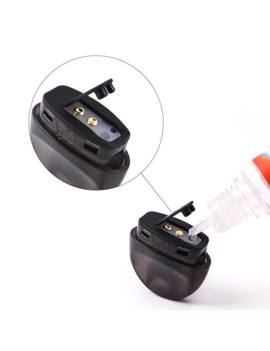 Для заправки рідиною необхідно витягнути картридж з батарейного блоку, відкрити силіконову заглушку, залити улюблену рідину в випарну камеру, після закриття заглушки повернути картридж в колишнє положення.