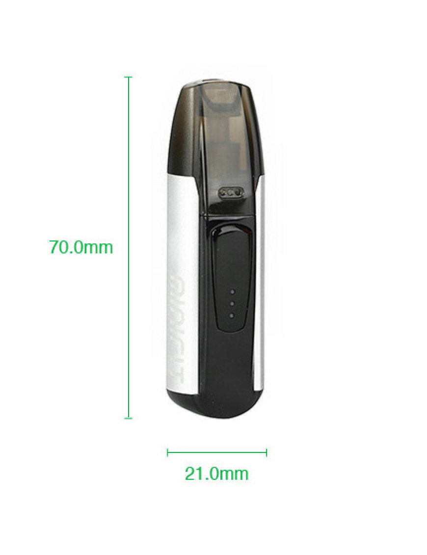Justfog MINIFIT - це компактний пристрій для паріння, який працює від батареї 370 мАч і картриджем об'ємом 1,5 мл. Батарея підтримує вихід постійної напруги з 3-рівневим індикатором заряду батареї, що залишився.