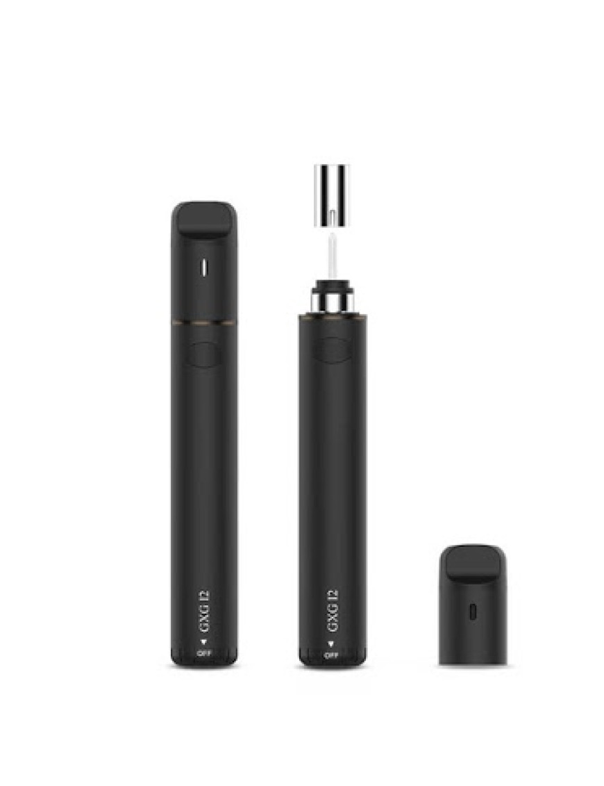 На нижньому торці розташована інноваційна кришка з інтегрованим поворотним 4-х режимним перемикачем, що управляє як вимкненням, так і градаціями температури від 240 до 260 градусів з кроком 10 градусів. Вони позначені літерами L, M і H, видними у віконці, підкресленому символом стрілки та назвою виробу. Конструкція нагрівальної частини оптимізована для обслуговування. Вона розбирається на три елементи – нагрівач зі штирем, металеву склянку та пластикову кришку-мундштук, які легко очищати від небажаних забруднень окремо. Це значно спрощує процес і вкорочує час профілактики. Орієнтація на поширені розхідники дозволяє заповнювати необхідний запас у розумні терміни і бути впевненим у їх доступності надалі.