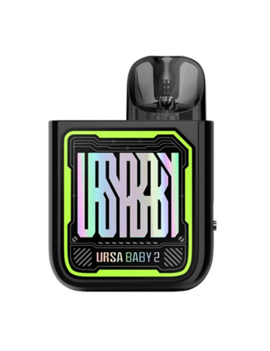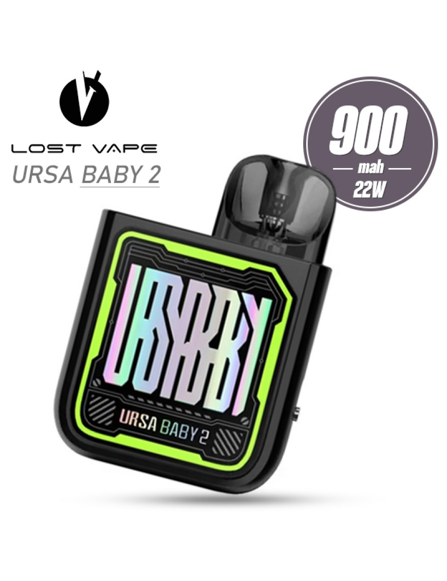 Lost Vape Ursa Baby 2 Pod Kit 900 мАч - компактна Pod система, оснащена потужним вбудованим акумулятором і розрахована на використання картриджів серії Ursa. Форма пристрою трохи нагадує сірникову коробку, його габарити становлять 49 х 69 х 17.5 мм. Нижні кути закруглені, завдяки чому девайс зручно тримати в руці. Матеріалом для виготовлення корпусу слугує міцний пластик, тому його вага незначна і становить усього 48.5 грамів, а ще поверхня дуже гладенька та приємна на дотик. Передня і задня панелі мають власний малюнок, одна з панелей слугує не лише прикрасою для вейпа, а й індикатором для відстеження рівня заряду. Живлення Lost Vape Baby 2 забезпечується вбудованим акумулятором ємністю 900 мАг, зарядка здійснюється за допомогою роз'єму USB Type-C, розташованого на нижньому торці пристрою. Активація пристрою відбувається під час затягування. Комплектні картриджі з вбудованими випаровувачами на 0.6 і 0.8 Ом, вміщують в себе 2.5 мл і утримуються в пристрої за допомогою магнітів. Для заправки картриджа його необхідно вийняти його з батарейного блоку, відкрити силіконову заглушку і залити рідину.