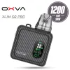 OXVA XLIM SQ Pro Pod Kit 1200 мАч - мініатюрна Pod система з інформативним кольоровим інтерфейсом, регульованою потужністю і підтримкою картриджів серії XLIM. Пристрій отримав квадратний корпус з легкого сплаву і полімерів, який легко ховається в долоні, залишаючи зверху лише ергономічний мундштук ховається в долоні, залишаючи зверху лише ергономічний мундштук змінного картриджа. На лицьовій стороні розташований овальний кольоровий дисплей 0.96», регулювання інтенсивності затягування реалізовано за допомогою акуратного повзунка на одній з боковин пристрою. На іншій боковині розташована кнопка активації та сучасний роз'єм USB Type-C. За управління відповідає функціональна плата з налаштованим кольоровим інтерфейсом, двома режимами роботи і діапазоном потужності від 5 до 30 Вт. Активацію девайса здійснюється натисканням кнопки або за затяжкою. Джерелом живлення виступає вбудований акумулятор, ємністю 1200 мАг. Зарядка здійснюється через USB Type-C струмом у 2А. Картриджна система незмінна - це пристойна кількість витратних матеріалів різних ревізій з вбудованими випаровувачами на сітці. В комплект пристрою увійшли два оновлені екземпляри OXVA XLIM Top Fill Cartridge зі збільшеним ресурсом роботи і бічним, верхнім заправленням.