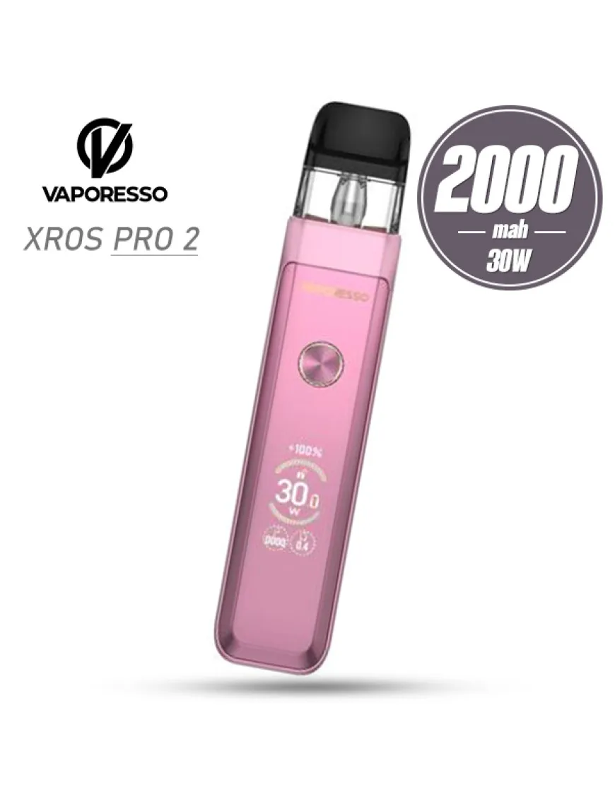 Vaporesso XROS PRO 2 2000 мАг - удосконалена версія Pod системи лінійки XROS від відомої компанії Vaporesso. Пристрій отримав витягнутий прямокутний корпус з магнієвого сплаву, більш ємний акумулятор і оновлені картриджі Corex 3.0. На лицьовій стороні встановлена кругла кнопка активації і IML панель з потайним TFT дисплеєм, тильна сторона оснащена повзунком регулювання обдування. Активація пристрою відбувається як при затяжці, так і за допомогою кнопки. Важлива особливість Pod системи, що вона працює під керуванням всім відомого чіпа Axon, що підтримує максимальну потужність в 30 ват і вдосконалений режим Super Pulse, який забезпечує рівну подачу потужності з першої до останньої секунди затяжки. Живлення Vaporesso XROS PRO забезпечується вбудованим акумулятором, ємністю 2000 мАг, зарядка акумулятора проводиться за допомогою роз'єму USB Type-C, розташованого на нижньому торці пристрою, струмом 2А. У комплекті Vaporesso XROS PRO 2 представлені два картриджі XROS Series COREX 3.0 з вбудованими сітчастими випарниками на 0.4 Ом і 0.6 Ом. Технологія COREX 3.0 забезпечує поліпшені характеристики в порівнянні з попереднім поколінням картриджів і збільшує термін служби випарника на 30%. Одна з ключових особливостей пристрою в тому, що в нього можна встановлювати будь-які картриджі серії XROS, завдяки чому не виникне складнощів з пошуком витратних матеріалів.
