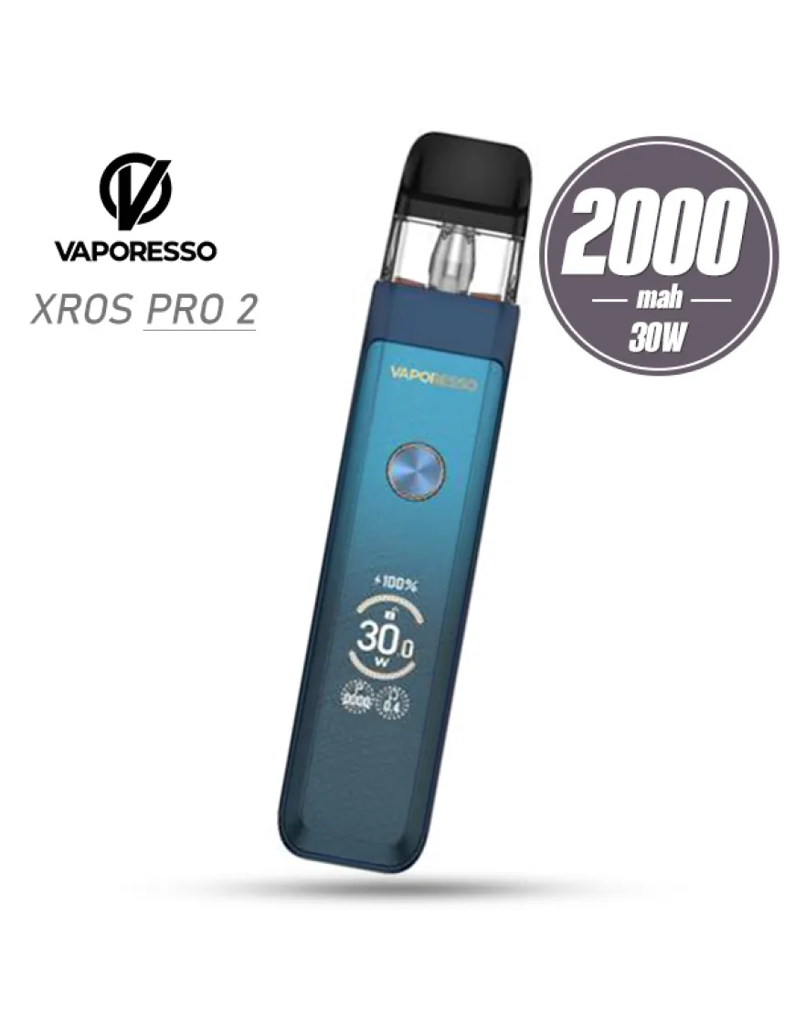 Vaporesso XROS PRO 2 2000 мАг - удосконалена версія Pod системи лінійки XROS від відомої компанії Vaporesso. Пристрій отримав витягнутий прямокутний корпус з магнієвого сплаву, більш ємний акумулятор і оновлені картриджі Corex 3.0. На лицьовій стороні встановлена кругла кнопка активації і IML панель з потайним TFT дисплеєм, тильна сторона оснащена повзунком регулювання обдування. Активація пристрою відбувається як при затяжці, так і за допомогою кнопки. Важлива особливість Pod системи, що вона працює під керуванням всім відомого чіпа Axon, що підтримує максимальну потужність в 30 ват і вдосконалений режим Super Pulse, який забезпечує рівну подачу потужності з першої до останньої секунди затяжки. Живлення Vaporesso XROS PRO забезпечується вбудованим акумулятором, ємністю 2000 мАг, зарядка акумулятора проводиться за допомогою роз'єму USB Type-C, розташованого на нижньому торці пристрою, струмом 2А. У комплекті Vaporesso XROS PRO 2 представлені два картриджі XROS Series COREX 3.0 з вбудованими сітчастими випарниками на 0.4 Ом і 0.6 Ом. Технологія COREX 3.0 забезпечує поліпшені характеристики в порівнянні з попереднім поколінням картриджів і збільшує термін служби випарника на 30%. Одна з ключових особливостей пристрою в тому, що в нього можна встановлювати будь-які картриджі серії XROS, завдяки чому не виникне складнощів з пошуком витратних матеріалів.