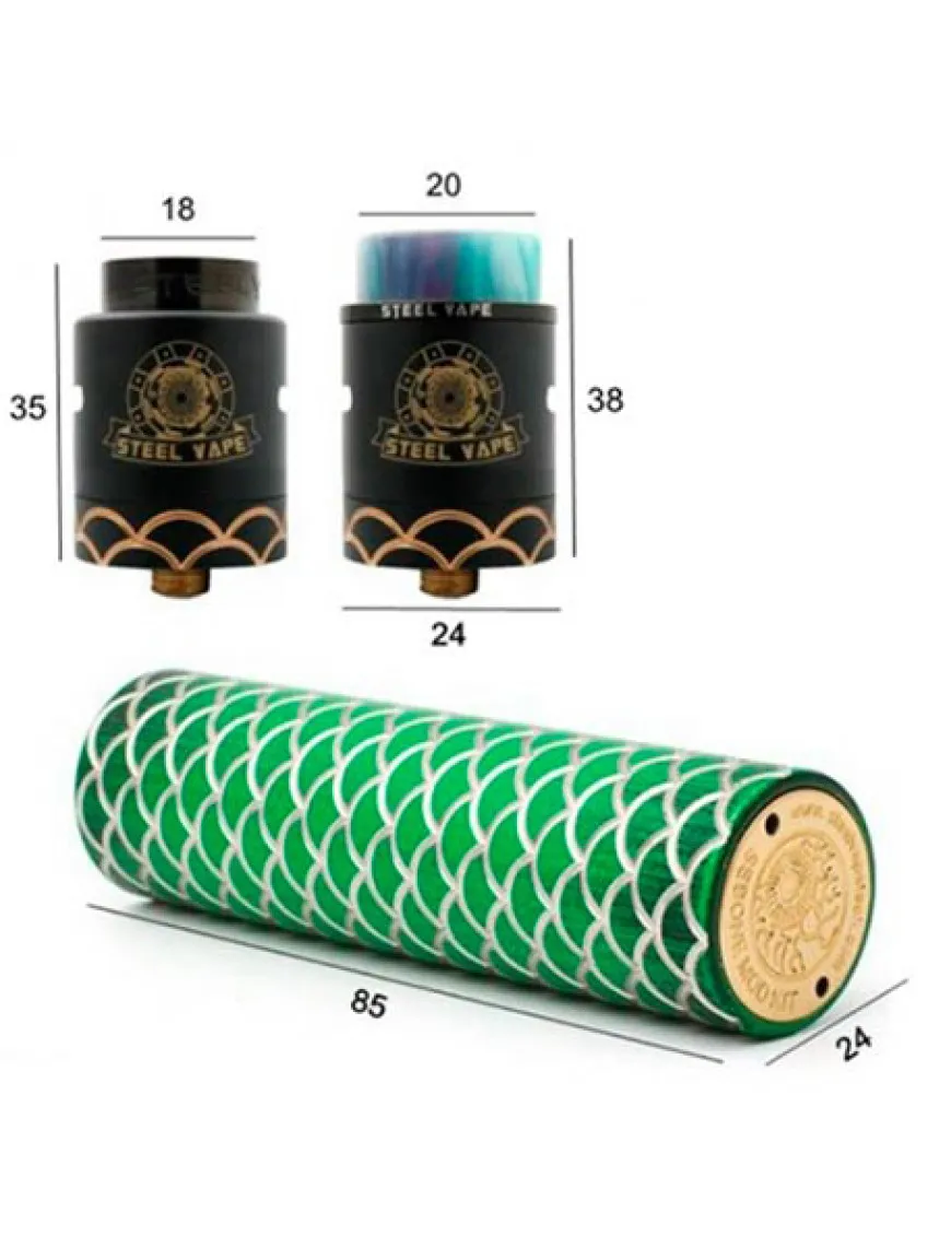 Steel Vape Sebone Mod Kit – стартовий набір електронної сигарети, що складається з хутра мода та дріпки, з боковим забором повітря, регульованим обдуванням та двома спіралями.