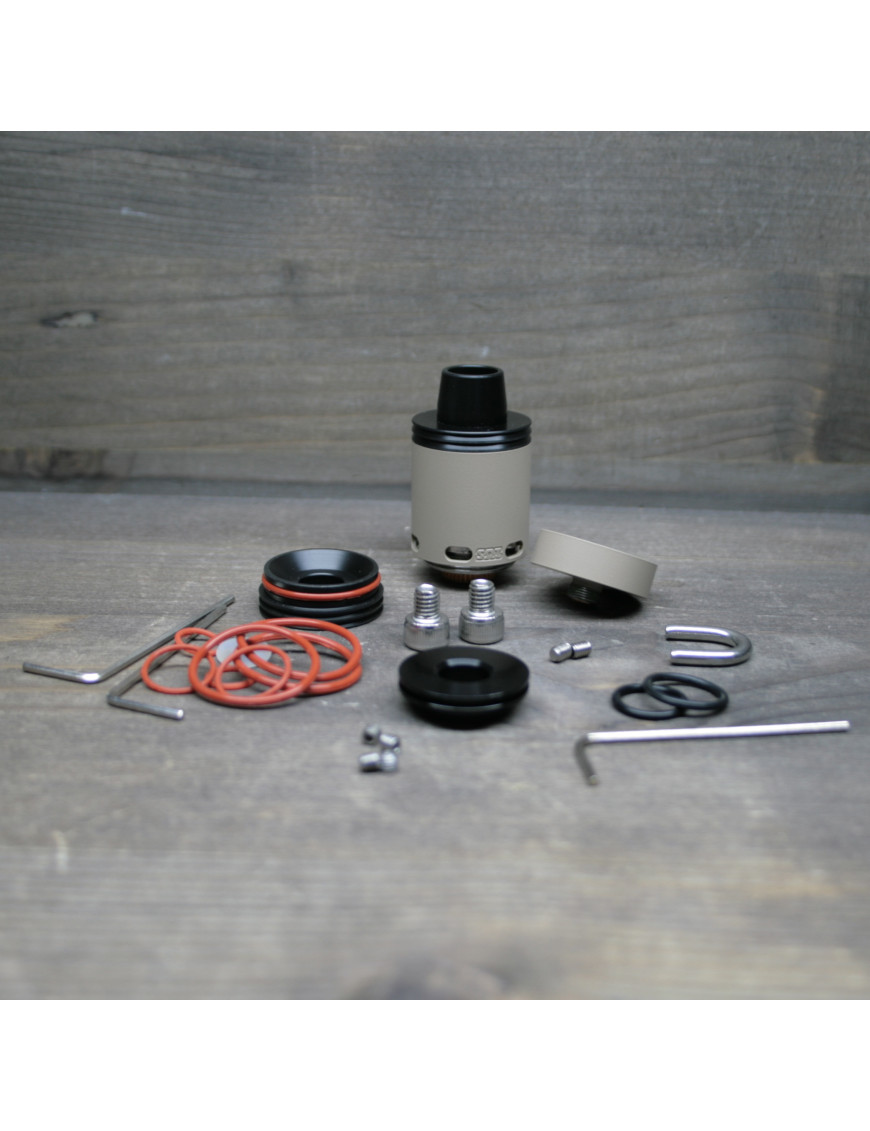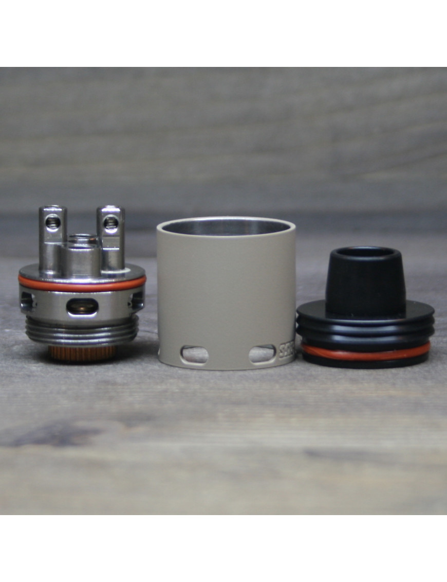 Дріпка, що постачається в комплекті, оснащена двома стійками, має два широкі повітроводи, в які через отвори навколо бази ефективно подаються потоки повітря. Завдяки такій конструкції забезпечуються щільні клуби пари, вільна тяга, навіть на великій потужності. Спіралі на стійках затискаються шестигранними гвинтами, що дозволяє встановлювати найскладніші та найжирніші намотування. База розуміється, що дуже зручно – якщо її потрібно ретельно промити.