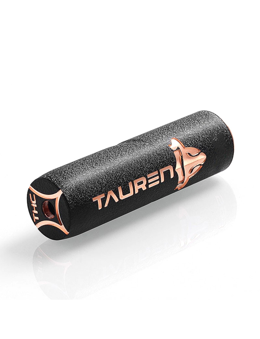 Серцем THC Tauren Mod, як і будь-якого іншого механічного мода, служить його кнопка. В даному випадку – механізм із постійним контактом, що дозволить уникнути появи чорних крапок на акумуляторі. Під піном кнопки розташовується велика сталева кулька, якою і відбувається замикання. При натисканні на кнопку, кулька упирається в округлу фаску піна, а іншою стороною в штовхач і 4 пелюстки, так що пляма контакту виходить дуже великою. У початкове положення штовхач повертається пружиною, яка не відіграє жодної ролі у струмопередачі.