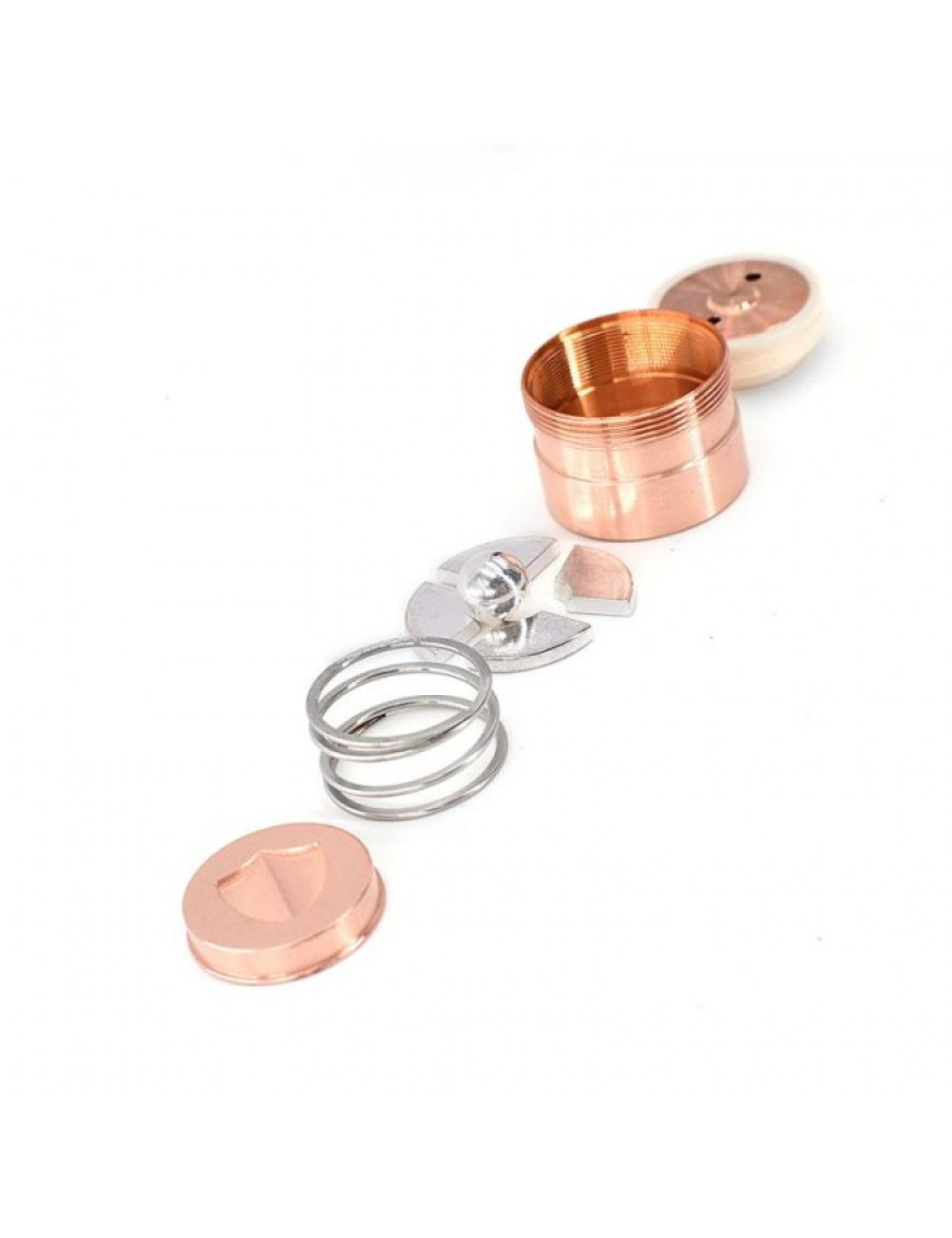 Габарити пристрою становлять 92.5 мм у висоту та 26 мм у діаметрі, але на посадці мехмод звужується до класичних 24 мм. Посадковий майданчик отримав широкі пази, які захистять атомайзер від прилипань, а корпус оснащений невеликою фаскою для пальця, щоб зручно розташуватись у руці. Матеріалом вибрано мідь, оскільки цей метал дуже добре проводить струм, особливо якщо врахувати чималу товщину стінок даного мехмоду.