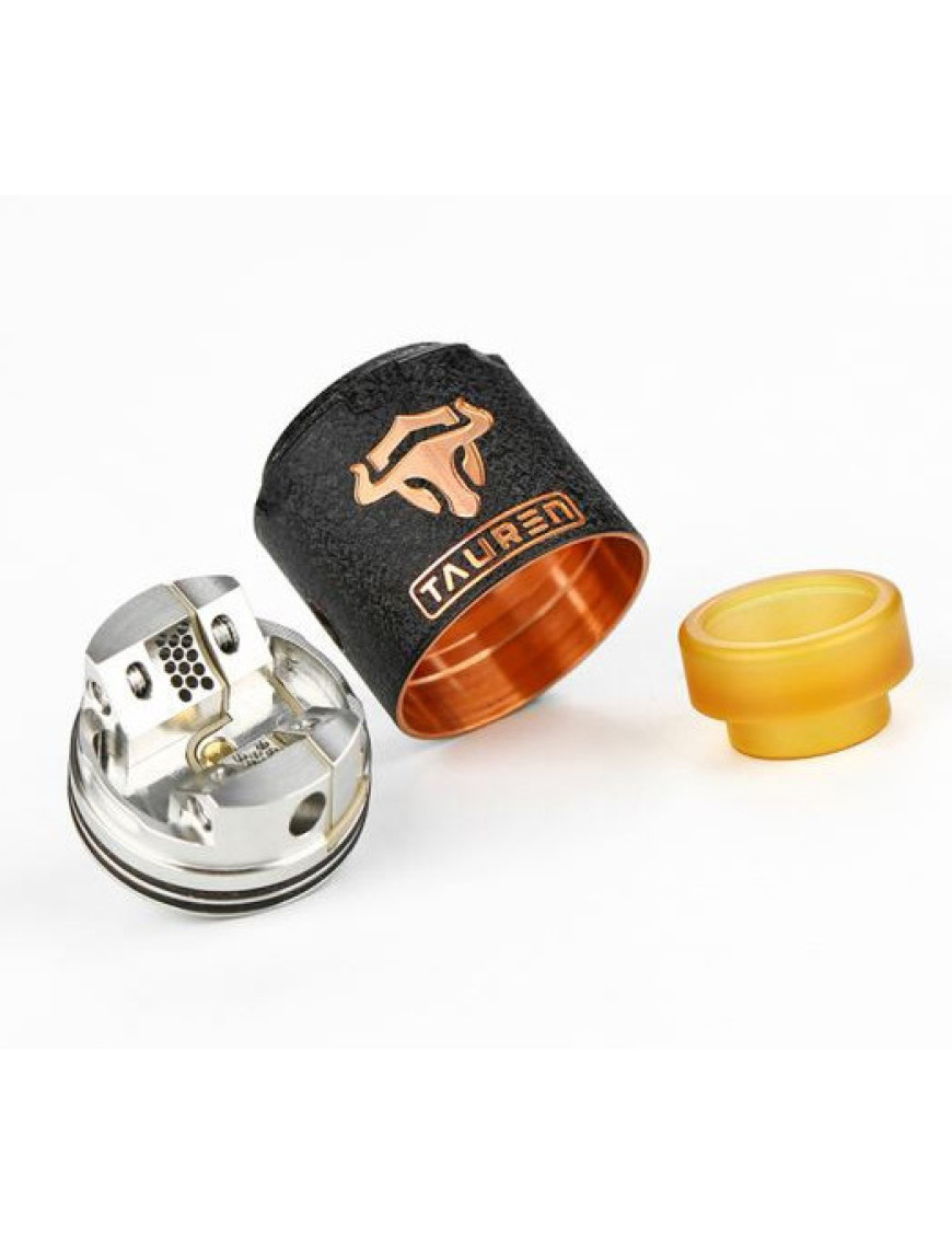 Діаметр Tauren RDA становить 24 мм при висоті 29 мм. Невелика висота атомайзера не випадкова, адже чим коротший паропровід, тим більш насичений смак. Купол виконаний із сплаву міді, база з нержавіючої сталі, дріп тип класичний, 810-й, безорінговий.
