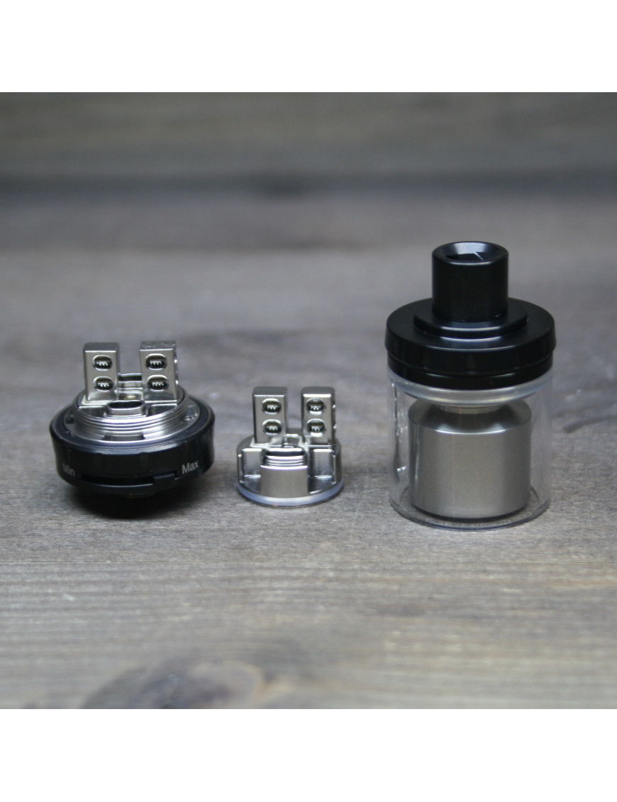- Робочий об'єм атомайзера становить 2 мл рідини. Для тих, кому цього обсягу недостатньо, розробники передбачили розширення, що окремо набуває, збільшує обсяг бака до 4 мл. Колба бака традиційно виготовлена зі скла, щоб спокійно витримувати постійний контакт з рідиною. Скло також підлягає заміні у разі пошкодження, також виробником передбачені різнокольорові стекла бака для того, щоб можна було швидко та легко кастомізувати пристрій та виділити його серед загальної маси пристроїв;