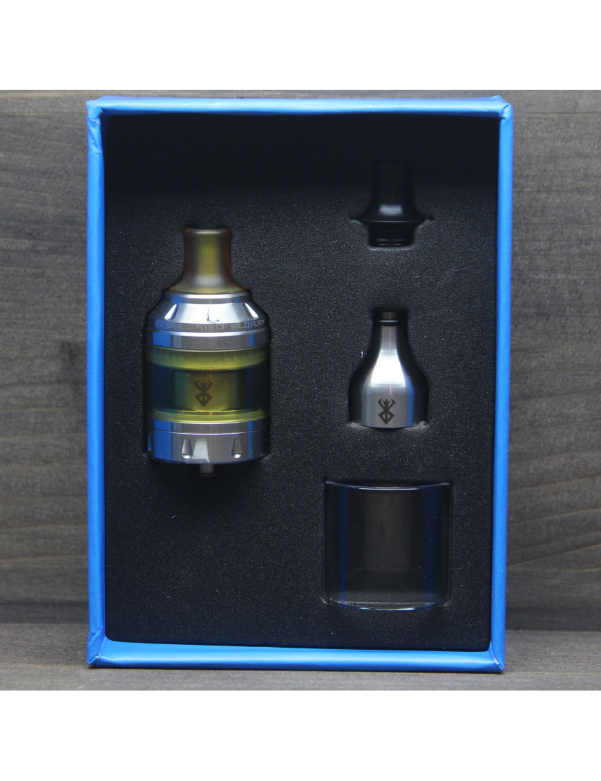 Як завжди, на вибір доступні дві версії пристрою: чорна та сталева. Діаметр бака становить 24 мм, що не зовсім правильно для сигаретного бака, але все ж таки в ногу з часом. З зовнішніх особливостей Berserker MTL RTA можна відзначити два 510 дріп-типу, що йдуть в комплекті, одні з яких виконаний з жароміцного пластику ULTEM, а другий з делрину. Крім того, в комплекті можна буде відшукати ще й два скла для бака, а також два куполи випарної камери. Зроблено це для зміни обсягу пристрою з 2 мл до 4,5 мл. У цих маніпуляціях покликаний допомогти спеціальний ключик для відкручування контргайки, що утримує купол випарної камери.