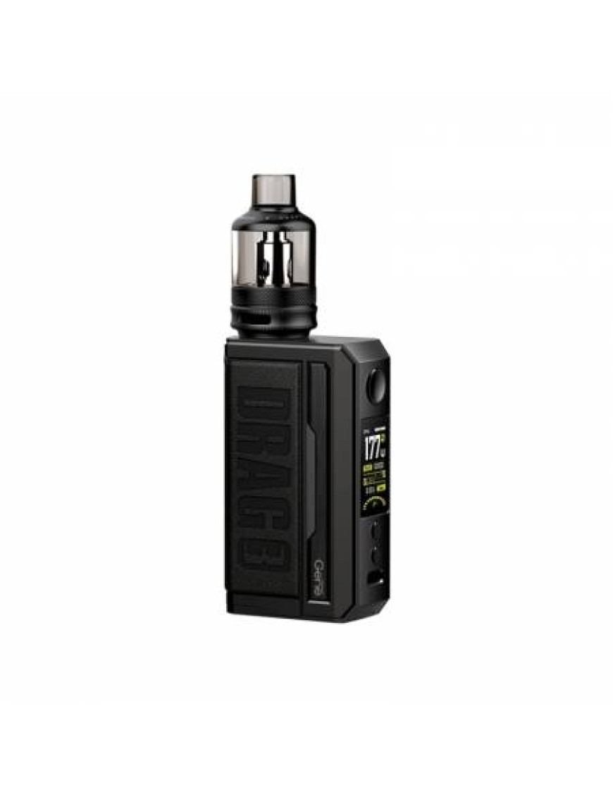 VOOPOO DRAG 3 177W TC Kit with TPP Tank Classic витриманий у традиційному корпоративному стилі бренду VOOPOO, звичному для шанувальників продукції фірми. Масивний прямокутний корпус боксмоду VOOPOO DRAG 3 177W TC Kit with TPP Tank Classic з цинкового сплаву покритий напиленням, а декоративна накладка з екошкіри надає виробу імпозантного вигляду.