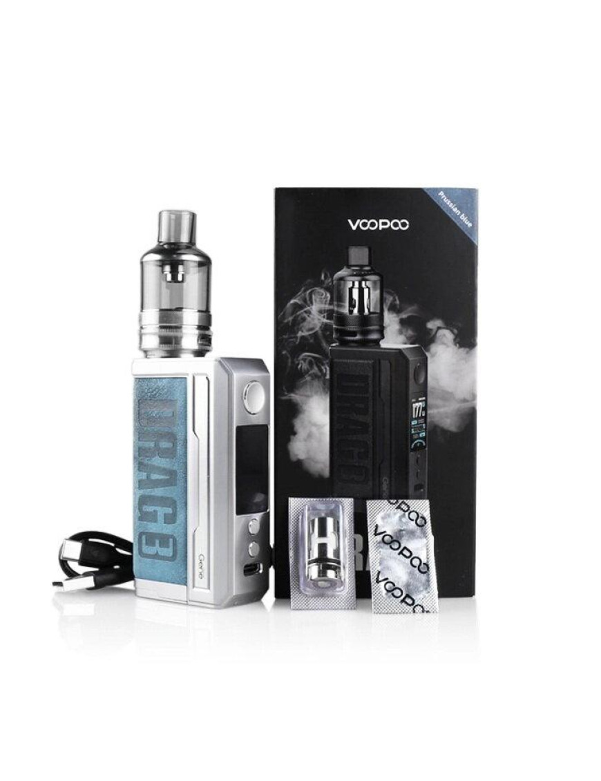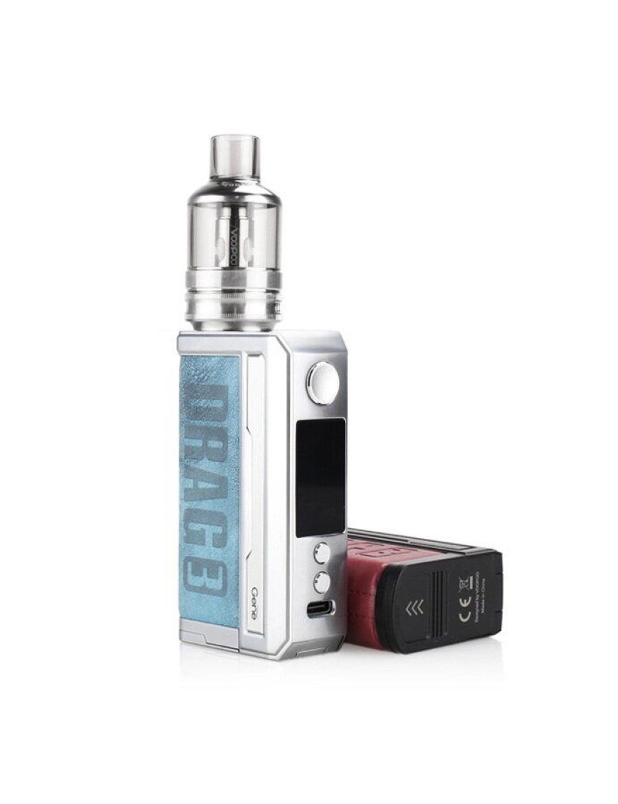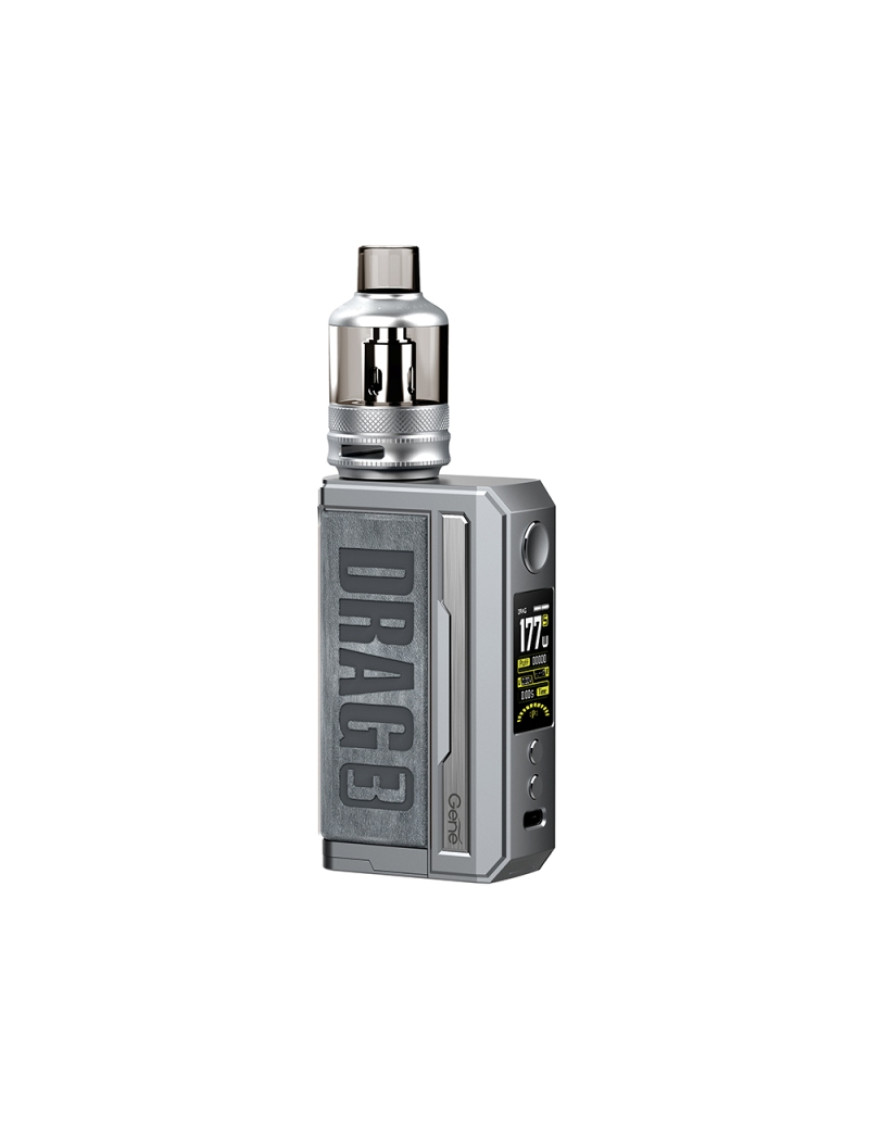 VOOPOO DRAG 3 177W TC Kit with TPP Tank Classic витриманий у традиційному корпоративному стилі бренду VOOPOO, звичному для шанувальників продукції фірми. Масивний прямокутний корпус боксмоду VOOPOO DRAG 3 177W TC Kit with TPP Tank Classic з цинкового сплаву покритий напиленням, а декоративна накладка з екошкіри надає виробу імпозантного вигляду.