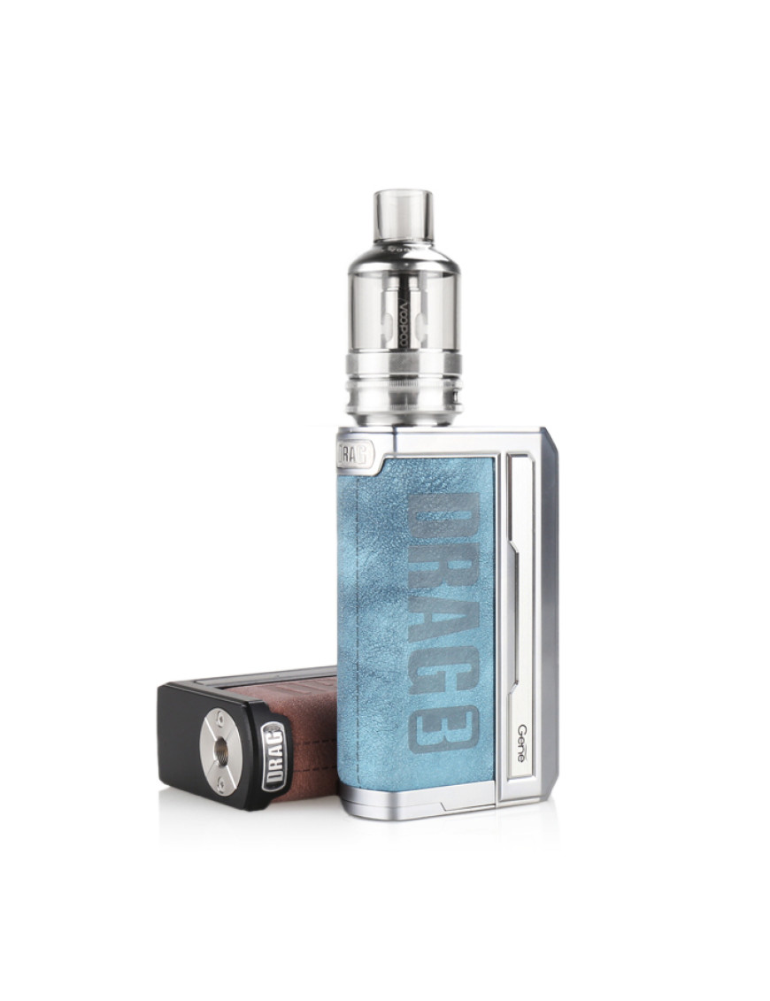 Величезне ім'я серії DRAG з одного боку, як і логотип компанії VOOPOO з іншого, тиснені на декоративних накладках з екошкіри, наголошують на спадкоємності традицій. Скошені кути лицьової грані є даниною сучасним трендам оформлення.