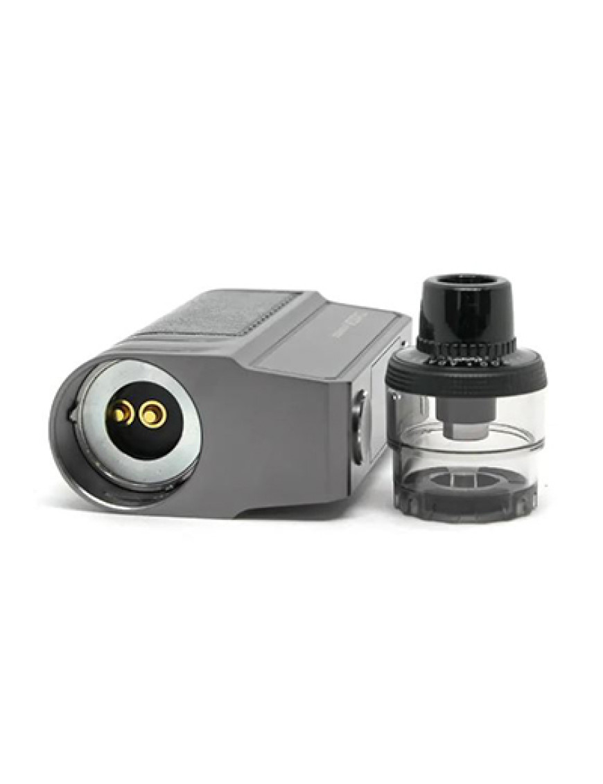 Пристрій представляє собою невелику коробочку, висота якої становить 94 мм з урахуванням бачка, а гранями виходить 46 х 25 мм. На лицьовій частині розташувалася клавіша активації з виїмкою, екранчик, гойдалка регулювання та роз'єм для зарядки. Зі зворотного боку девайс оперізує декоративна вставка. Навпаки слота для картриджа передбачені два прорізи: перша слугує для забору повітря, а друга допомагає краще відстежувати рівень рідини, коли вона залишається тільки на дні резервуара.