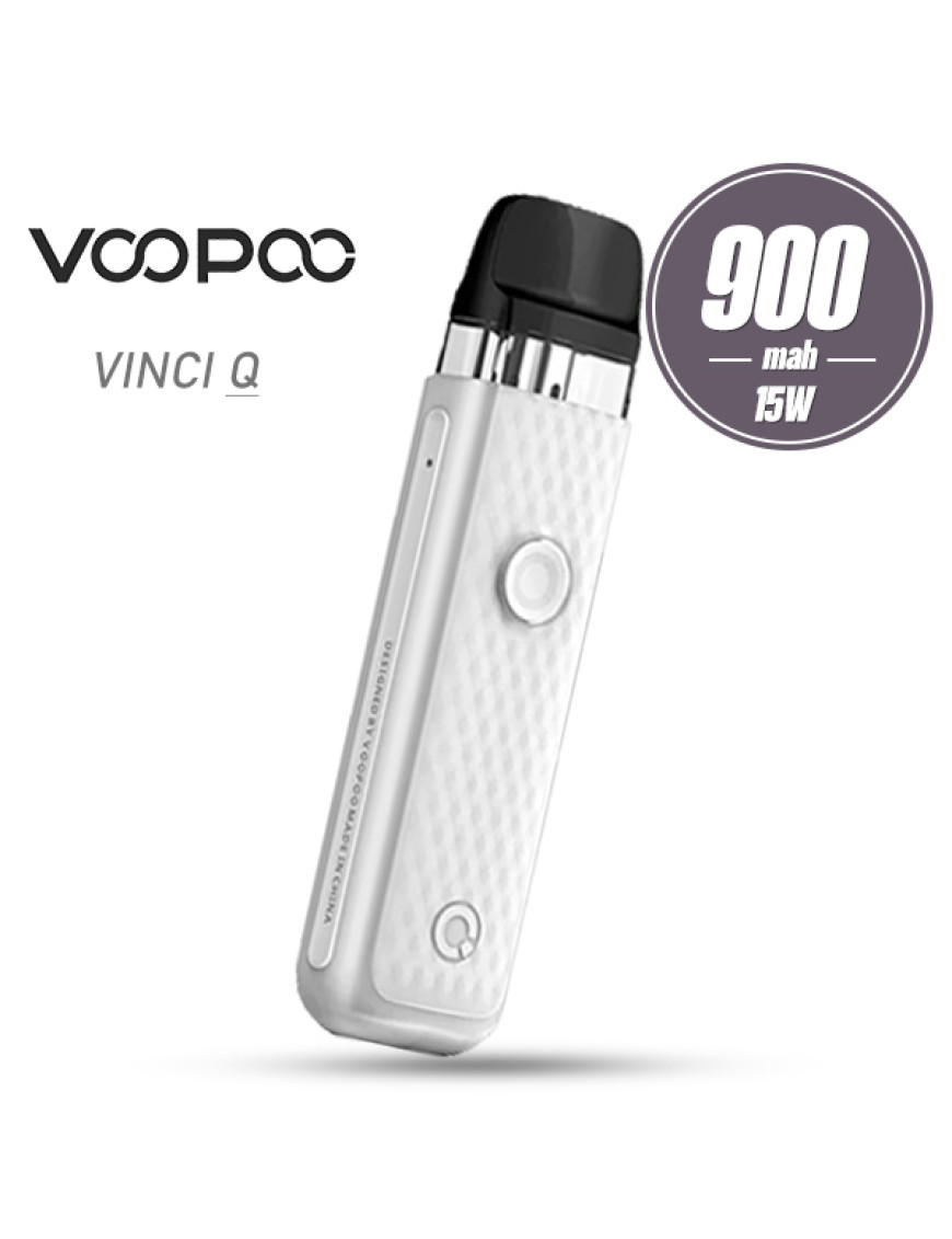 Voopoo Vinci Q Pod Kit 900mah - компактна Pod система із вбудованим акумулятором середньої ємності, варіативною активацією та працює зі змінними картриджами із серії Vinci. Pod система упакована в легкий, але міцний двошаровий корпус із термостійких полімерів. Лицьова сторона має круглу кнопку активації з вбудованим індикатором. З обох боків розподілили дві маленькі перфорації, які відповідають за забір повітря. Окрім того, на одному з торців розмістили USB-порт. Активація пристрою здійснюється як після натискання кнопки, так і безпосередньо при затягуванні. Мінімалістична плата має необхідну систему безпеки, а також автоматичну оптимізацію потужності під опір випарника в межах від 11 до 15 Ватів. За живлення відповідає вбудований акумулятор ємністю 900 мАг.Комплектний картридж з інтегрованим випарником сітки, опором 1.2 Ом, має верхню заправку. Voopoo Vinci Q Pod сумісний з картриджами від Vinci Pod, Drag Nano 2 Pod та Vinci Royal Edition Pod. Обсяг резервуара не змінився і, як і раніше, становить 2мл.