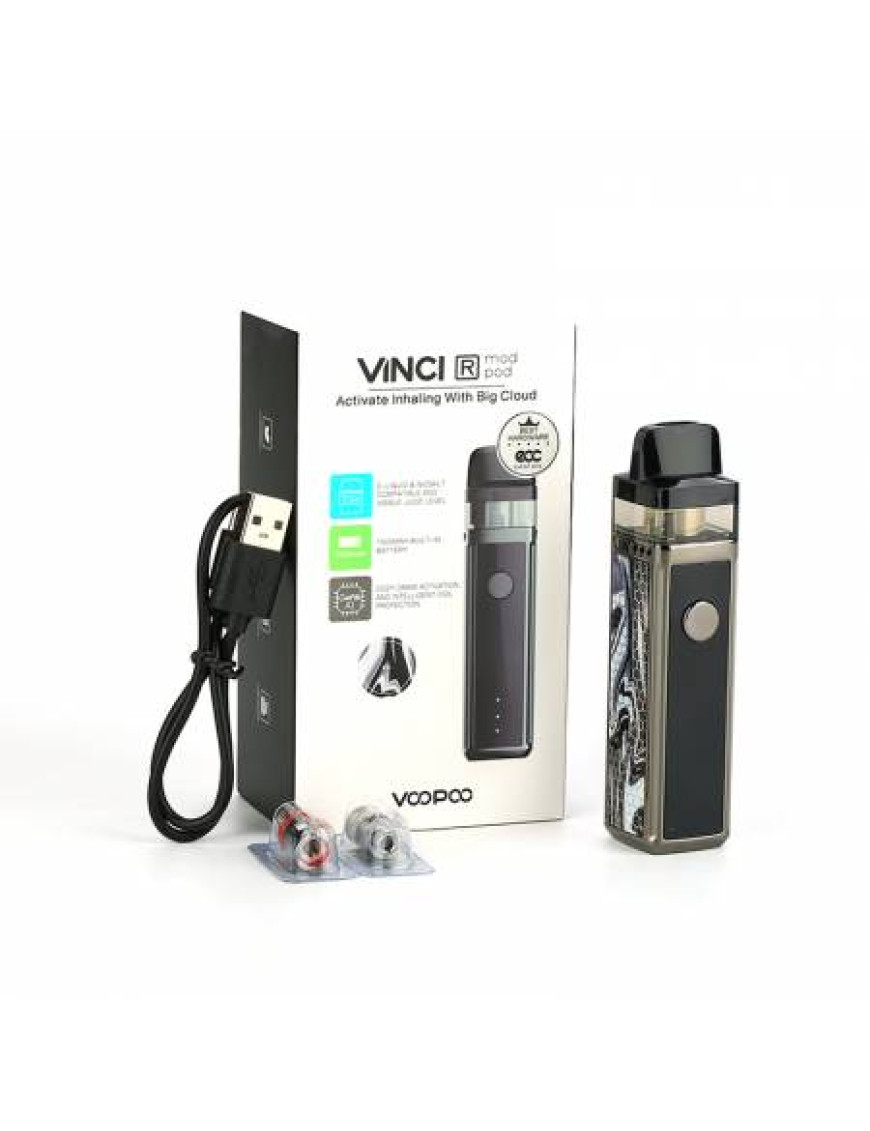 Живлення цієї Pod системи забезпечується вбудованим акумулятором ємністю 1500 мАч, заряджається акумулятор за допомогою стандартного роз'єму micro USB, розташованого на нижньому торці девайса, струмом 1 А, що дозволяє зарядити АКБ повністю за півтори години. Контролювати рівень заряду акумулятора можна за допомогою трьох світлодіодів, що змінюють свій колір, залежно від того, наскільки заряджена батарея. фірмовий чіпсет GENE.AI робить девайс продуктивним та надійним. У ньому є повний набір захистів - від низького - високого опору, від перегріву, від короткого замикання, від перезаряду - перерозряду. Активувати девайс можна вручну, натиснувши кнопку fire, або автоматично під час затягування. У пристрої використовується такий же картридж як і Vinci Mod Pod, об'ємом 5.5 мл. Працює Voopoo Vinci R Mod Pod на змінних випарниках серії PnP.