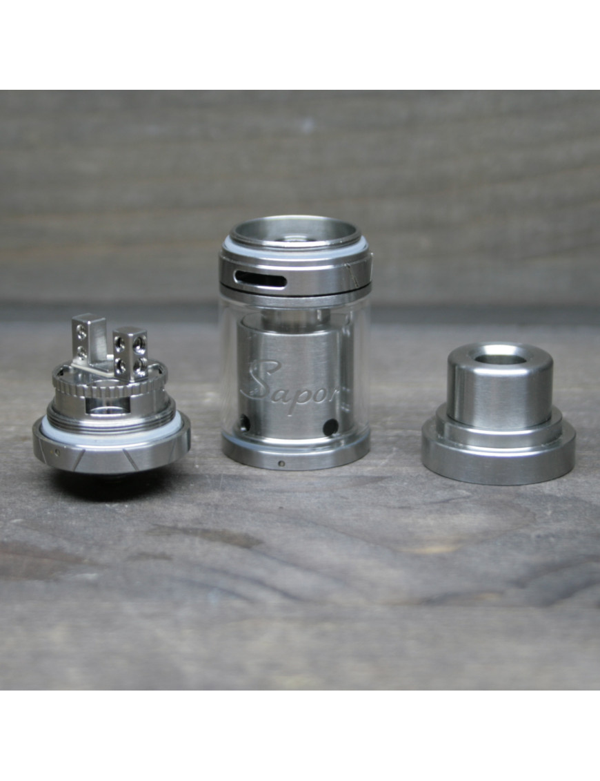 Wotofo один з найкращих виробників пристроїв для вейпінгу. Їхні баки давно користуються популярністю завдяки якісним конструкціям та цікавому зовнішньому вигляду, не виняток і SAPOR RTA ATOMIZER. Цей бак не підійде для клаудчейзерів, а скоріше для людей, які цінують просте та спокійне ширяння. Це видно по стійку Velocity з невеликими отворами, тому занадто товсті койли сюди не поставити.
