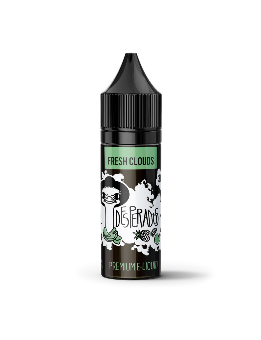 Рідина для електронних сигарет Desperados Salt - Fresh Clouds 30 mg 15 ml має у складі USP гліцерин, органічний нікотин, ароматизатор, пропіленгліколь.