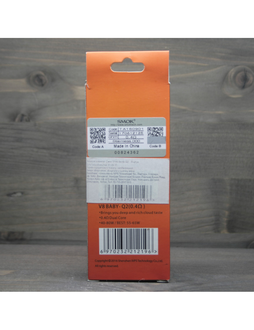 - Даний тип випарних елементів призначений для використання в новому баку від компанії Smok TFV8 Baby Beast Tank, не сумісний з іншими продуктами компанії Smok;