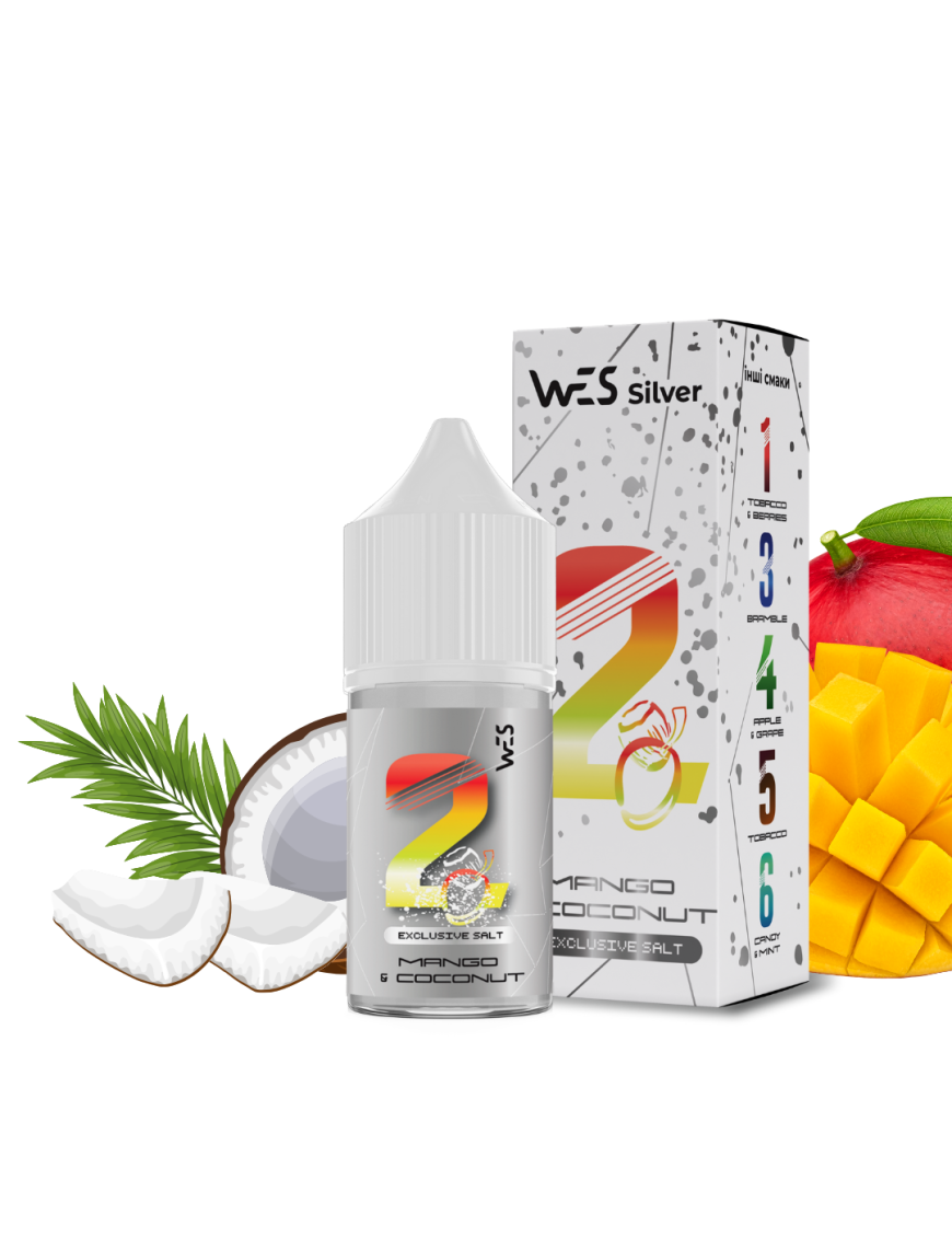 Рідина для електронних сигарет Wes - {Silver} 2 Mango Cocount 30ml 50mg має у складі: