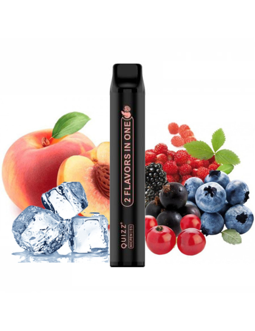 Quizz NICPEN 1800 Peach Ice/Mixed Berries – одноразова передзаправлена Pod-система вейпу (електронної сигарети) від компанії Quizz із двома смаками сольової рідини Peach Ice/Mixed Berries – смак ароматного персика з холодком або ягідного міксу.
