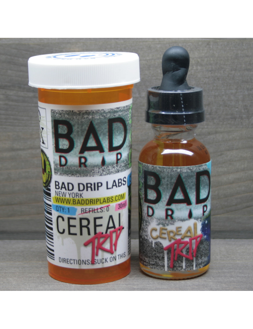 Рідина для електронних сигарет BAD DRIP - CEREAL TRIP 3 MG 30 ML має у складі USP гліцерин, органічний нікотин, ароматизатор, пропіленгліколь. Пар має яскравий і насичений десертний смак. Ця жижа розрахована на екстремальних любителів солодкого. Для того, щоб максимально відчути новий смак, рекомендуємо використовувати дріпку або нову вату. Співвідношення пропіленгліколю до гліцерину становить 75/25, що дозволяє випускати величезні клуби ароматної пари.