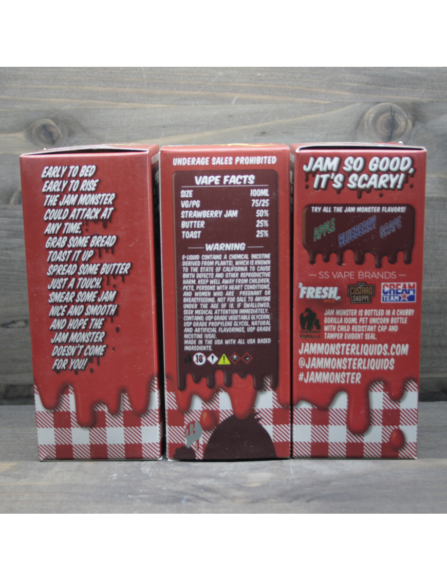 Короткий смак від виробника американської преміальної рідини та їхня лінійка Jam Monster. Strawberry, хіба що кухоль гарячої кави може доповнити цей рецепт. Насичений полуничний джем, за найкращими рецептами від професійних міксологів, був доведений до потрібної консистенції тільки з кращими компонентами та добірними ягодами полуничних плодів, справжні ласощі для справжніх поціновувачів пари. Хрумкі скибочки тосту возз'єднується з вершковим маслом і найсмачнішим полуничним джемом, та це саме те чого так довго чекали любителі полуниці, потіш себе прямо зараз.