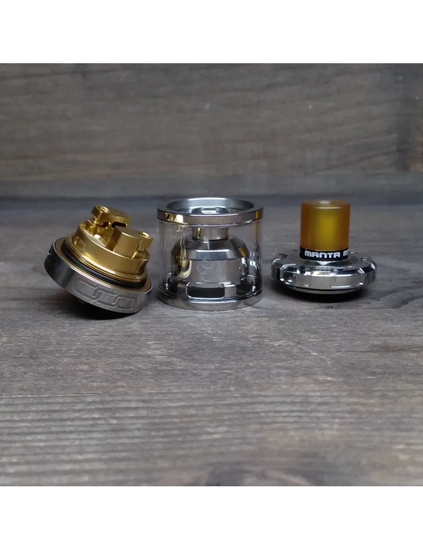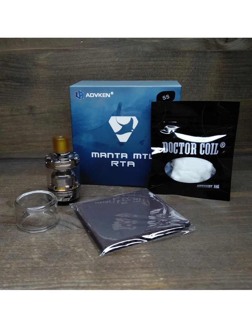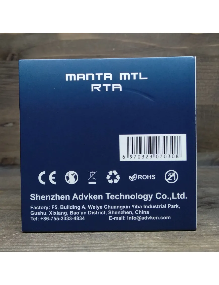 Удачный проект компании Advken, бак для любителей сигаретной затяжки Manta MTL RTA. Дизайн Manta MTL RTA знаком и легко узнаваемый. Бак выполнен из нержавеющей стали, тело бака выполнено со стекла. Данная модель от Advken укомплектована дрип-типом 510 стандарта с нанесенной по кругу надписью "Manta MTL". Высота устройства 43,2 мм. Диаметр 24 мм.