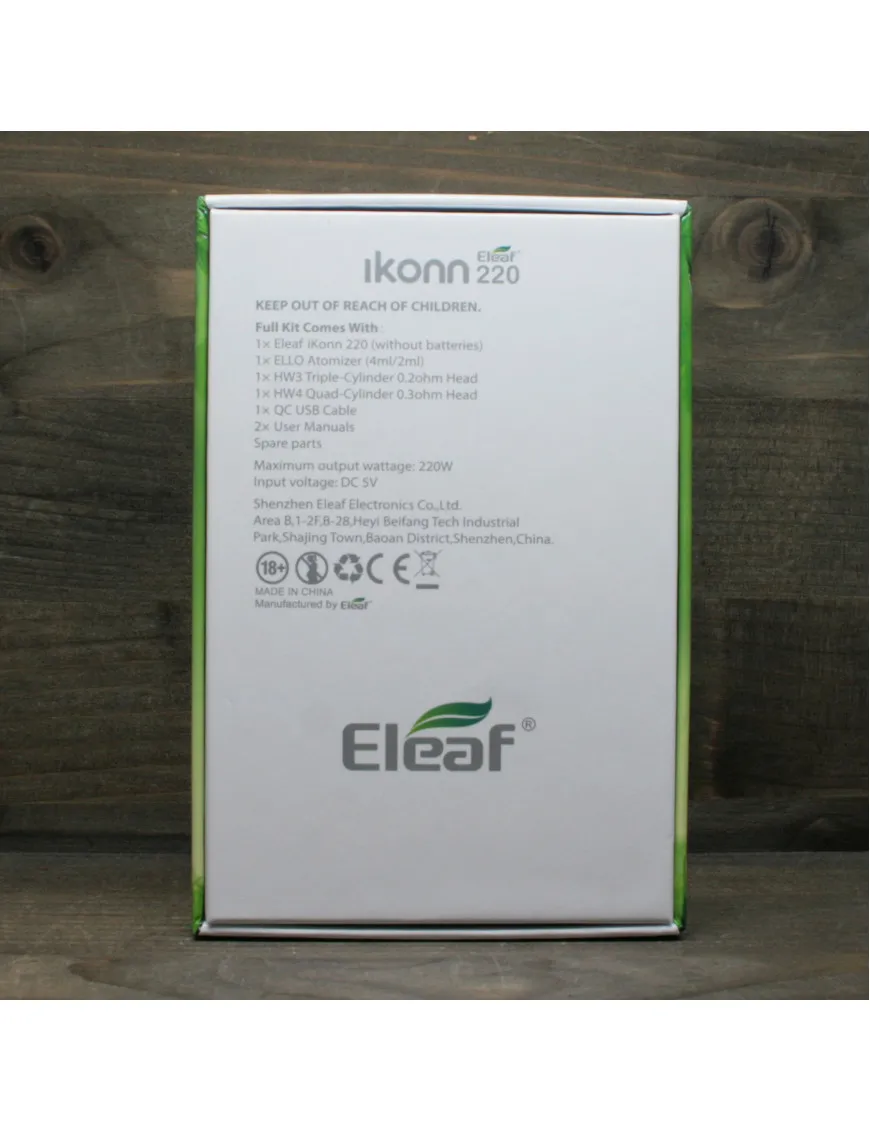 Стильный и современный боксмод отлично подойдёт человеку, держащему руку на пульсе трендов, который хочет получить максимум от парения и иметь качественный аксессуар, подчеркивающий избирательный вкус владельца, каким и является Eleaf iKonn 220