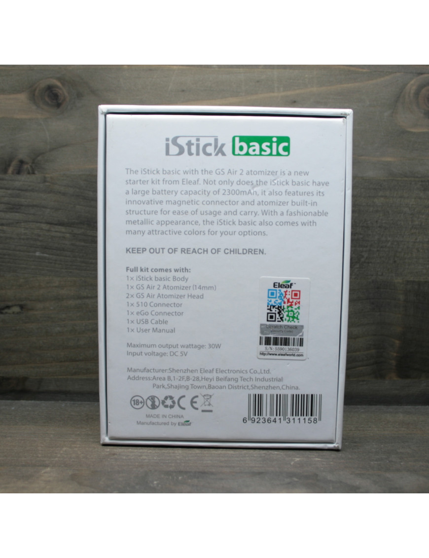 Eleaf iStick Basic Kit – эргономичный набор all-in-one, идеально подходящий для начинающих вейперов. Набор включает боксмод iStick Basic, в котором предусмотрены емкая батарея, клиромайзер нового поколения GS-Air 2.