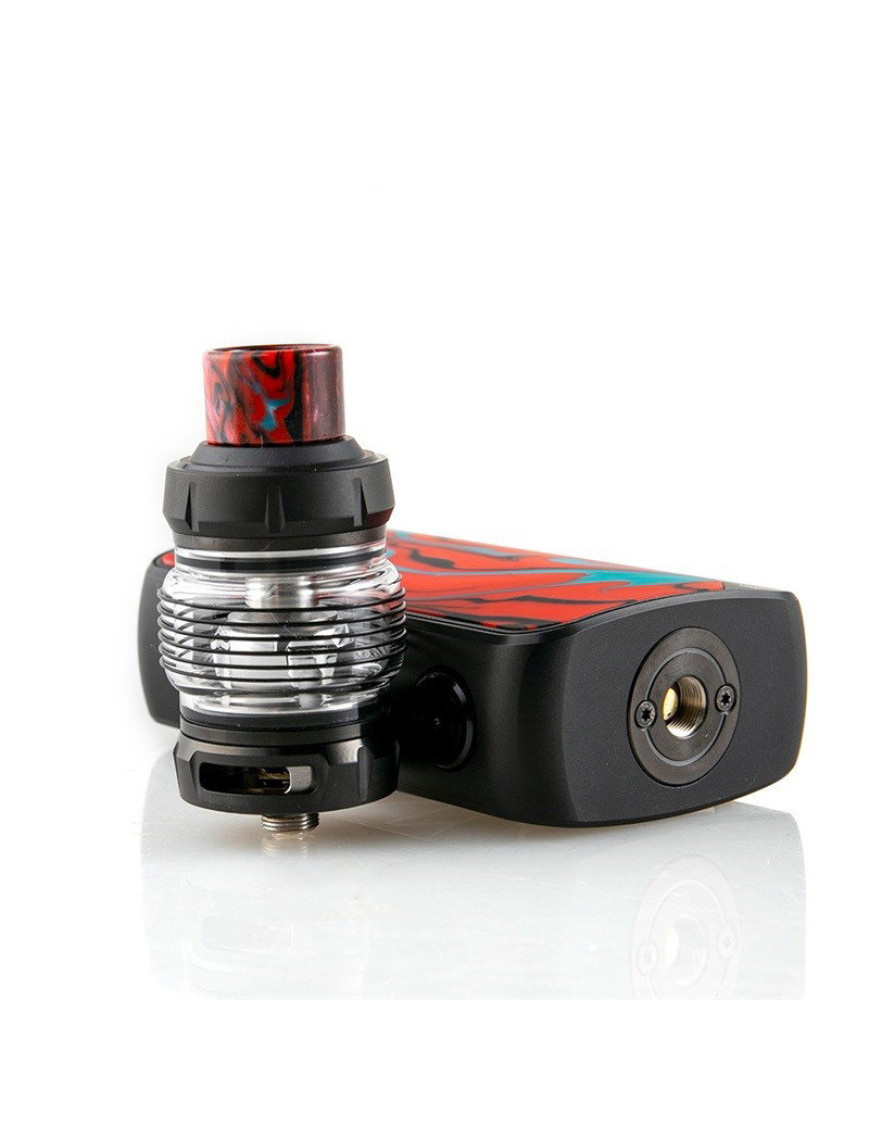 Корпус бокс мода выполнен из цинкового сплава и получил стандартные размеры для своего сегмента: 83 мм в высоту и 27 мм на 52 мм по граням, что позволяет принять на борт атомайзеры диаметром в 26 мм без бортика. По бокам располагаются декоративные панели: полимерная смола с одной стороны, и глянцевая с другой.