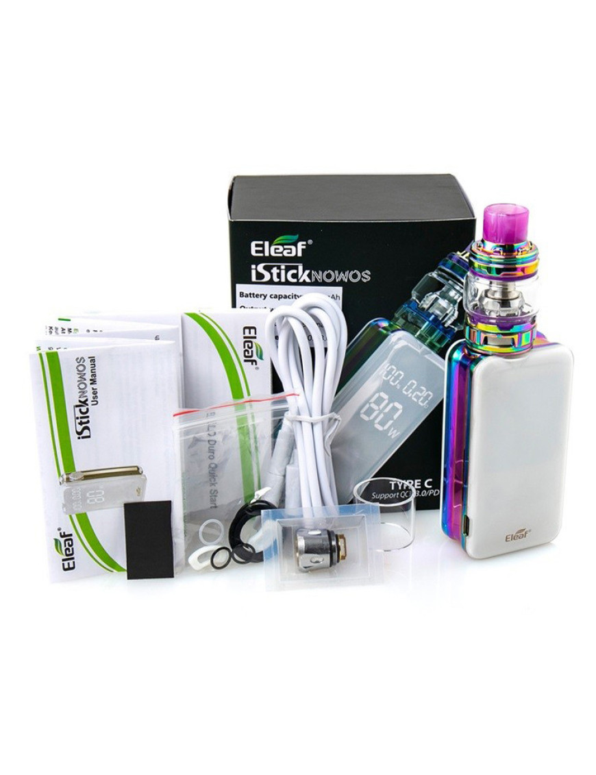 Eleaf iStick NOWOS новая легенда в мире вейпинга с инновационным светодиодным цифровым дисплеем и сенсорными кнопками, где эстетический вид соответствует легкой эксплуатации. Он имеет мощный аккумулятор 4400 мАч и поддерживает быструю зарядку QC3.0/PD3.0 Другой революционной особенностью является использование usb-кабеля типа C. В комплекте с атомайзером ELLO Duro, который поставляется с двумя новыми видами испарителей на сетке: HW-N Dual 0.2ohm и 0,25 Dual HW-M Оhm дарит вам новые ощущения в парении.