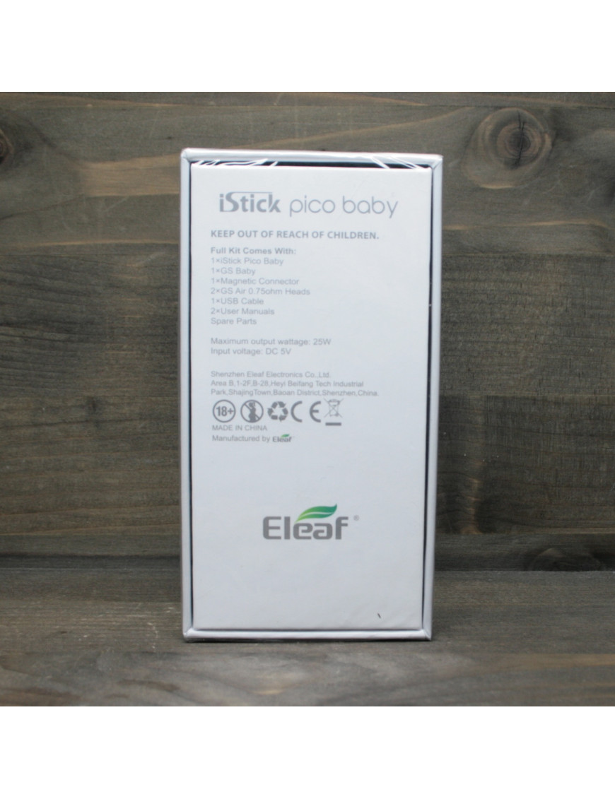 Eleaf - iStick Pico Baby Kit 25W – эргономичный набор, идеально подходящий для начинающих вейперов. Набор включает боксмод iStick Pico Baby, в котором предусмотрена емкая встроенная батарея, клиромайзер нового поколения GS-baby.