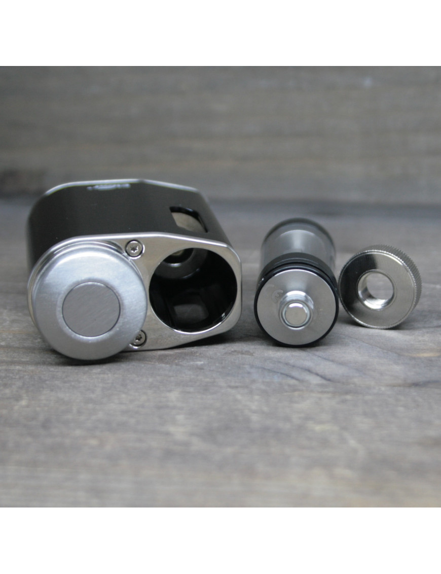 В боксмоде предусмотрен отсек, в который клиромайзер прячется полностью, видно только дрип-тип. В случае необходимости, испаритель просто извлечь, например, если его нужно помыть.