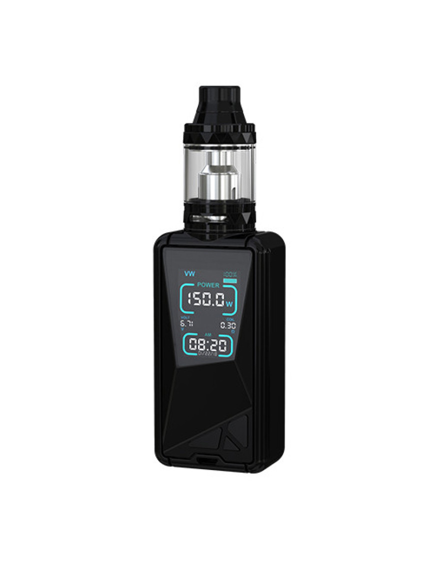 Этот набор состоит из 150-ваттного бокс мода характерной формы и клиромайзера ELLO емкостью 4 мл с верхней заправкой. В комплекте поставляются испарители на 0,25 и 0,3Ом. Питание обеспечивается встроенным аккумулятором емкостью 3400 мА-ч, вдобавок есть поддержка Passthrough, что обеспечивает возможность парения одновременно с зарядкой аккумулятора. Поддерживаются все современные режимы – байпас, вариватт и термоконтроль с настройкой температурного коэффициента TCR. Экран имеет большую диагональ - 1,45”, на выбор доступны 5 цветовых тем. Есть возможность обновления прошивки, что дает новые возможности для парения. Это отличный вариант для начинающего или продвинутого вейпера - удобный и в меру мощный.