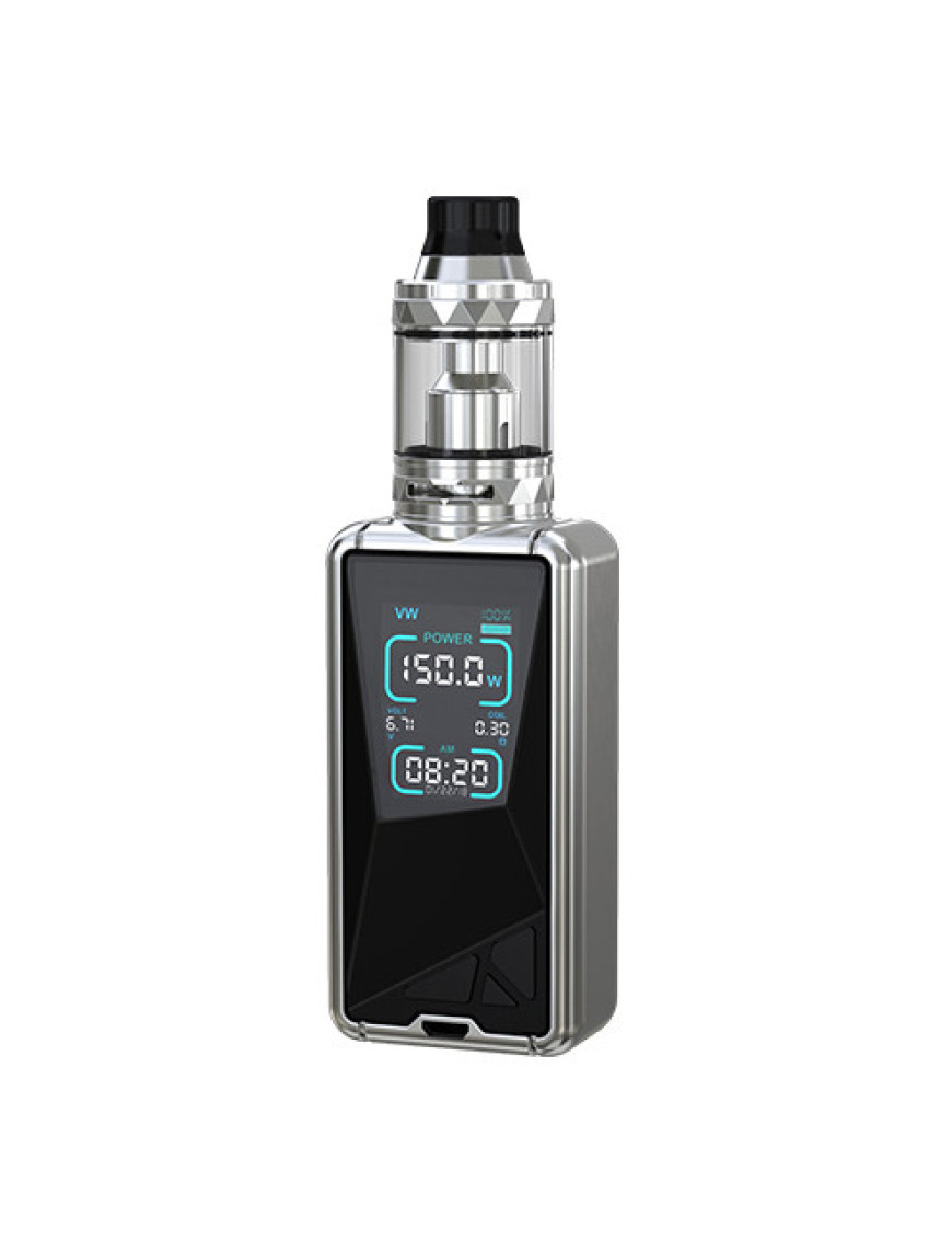Этот набор состоит из 150-ваттного бокс мода характерной формы и клиромайзера ELLO емкостью 4 мл с верхней заправкой. В комплекте поставляются испарители на 0,25 и 0,3Ом. Питание обеспечивается встроенным аккумулятором емкостью 3400 мА-ч, вдобавок есть поддержка Passthrough, что обеспечивает возможность парения одновременно с зарядкой аккумулятора. Поддерживаются все современные режимы – байпас, вариватт и термоконтроль с настройкой температурного коэффициента TCR. Экран имеет большую диагональ - 1,45”, на выбор доступны 5 цветовых тем. Есть возможность обновления прошивки, что дает новые возможности для парения. Это отличный вариант для начинающего или продвинутого вейпера - удобный и в меру мощный.