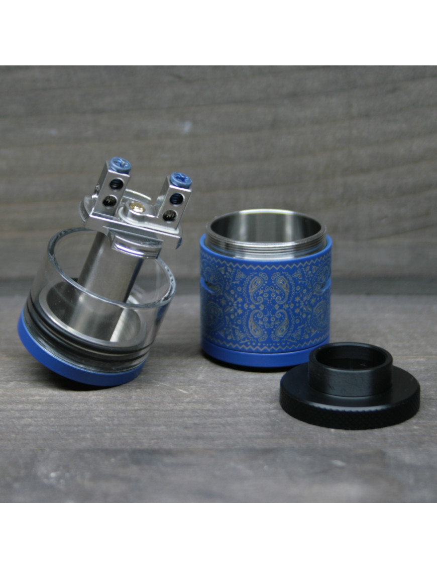Верхнюю часть занимает чафкэп, мундштук выступает на 5 мм, за счет внутреннего диаметра отверстия 12,3 мм возможна установка широких дрип-типов от других производителей. Переходник из комплекта под 510 формат отличается большой высотой, что позволяет использовать его в качестве самостоятельного мундштука.