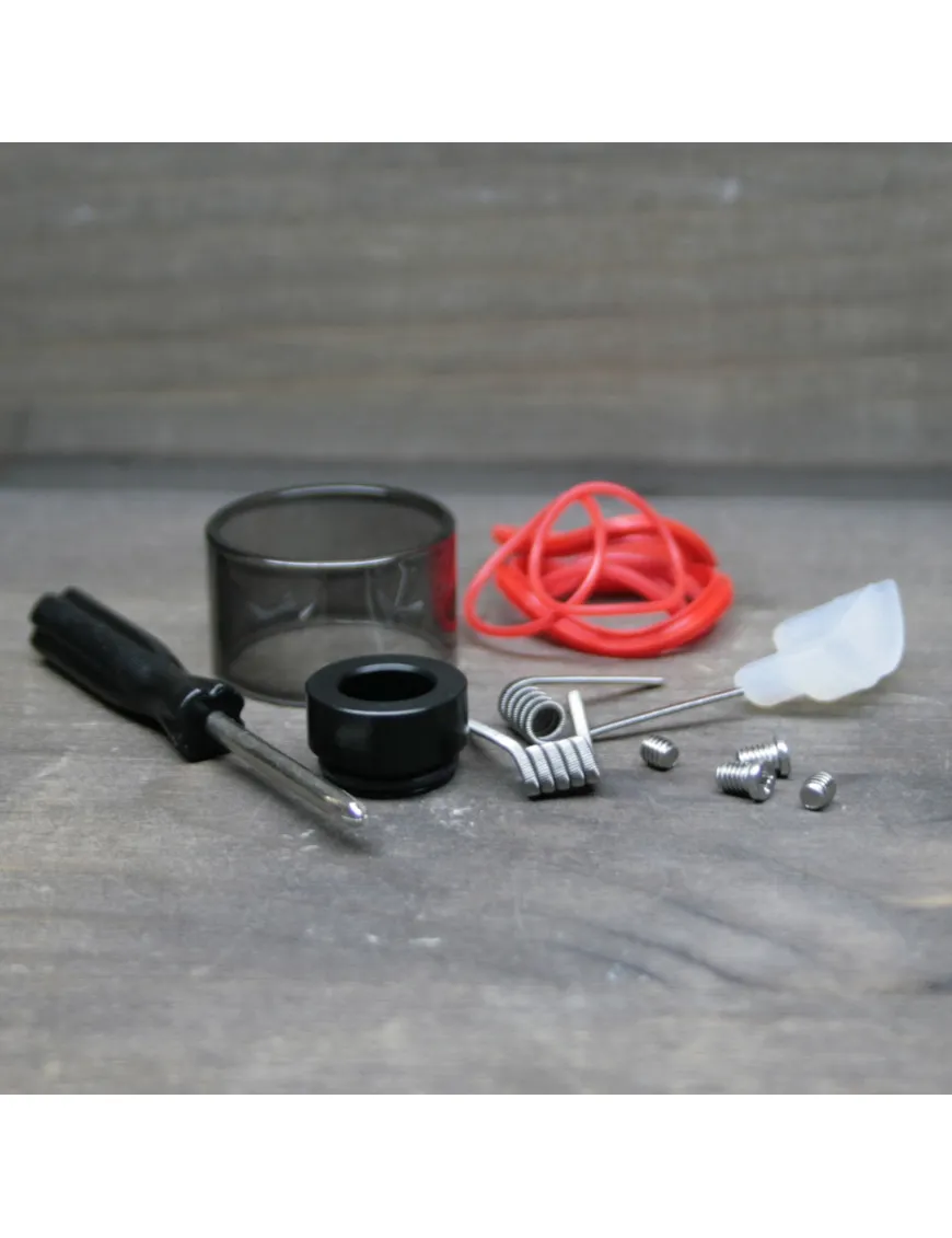 Приятная неожиданность для любителей кастомизации – в комплекте вы найдете винты необычного цвета, из титана. С помощью этих винтов базе можно придать оригинального вида, да и титан отличается повышенной прочностью. Также в комплекте есть заглушка, позволяющая использовать бак в режиме одной спирали.